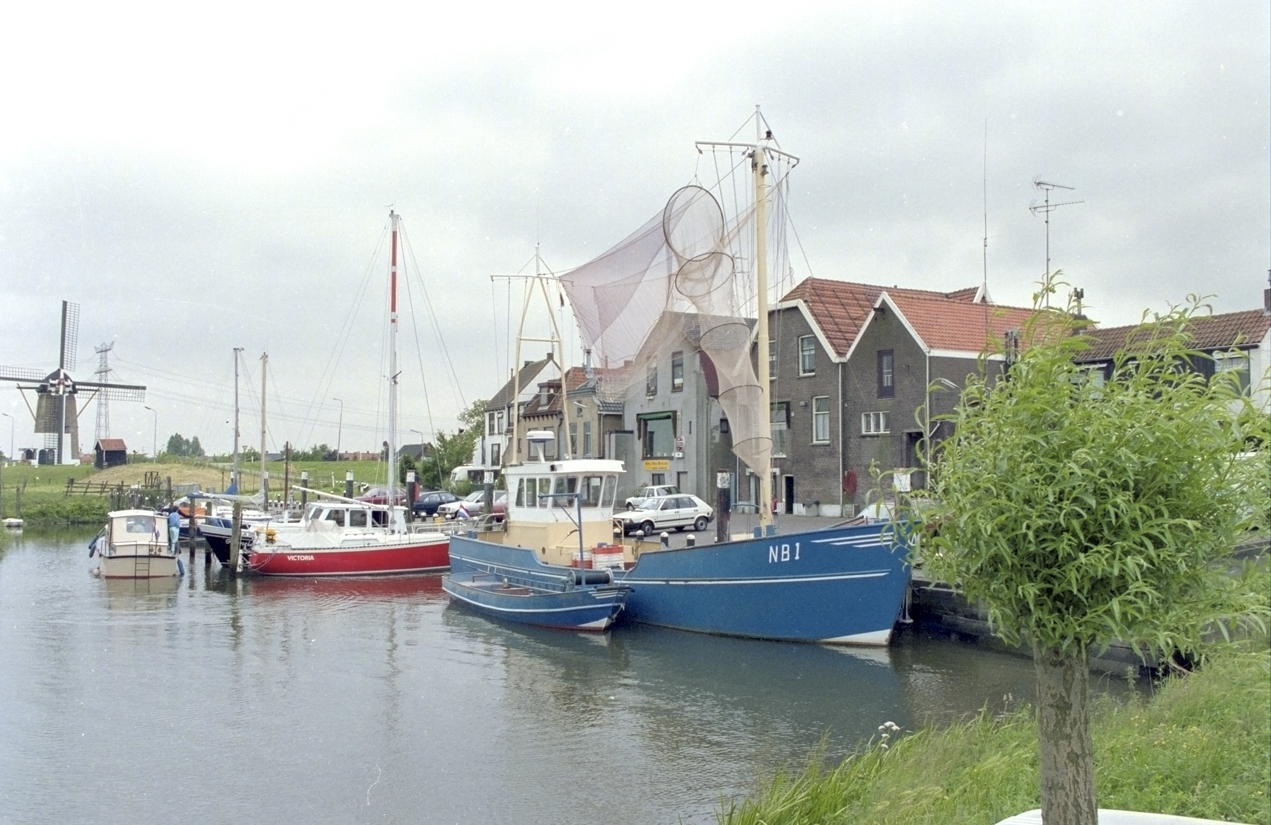 - Haven aan de Spuidijk in Nieuw-Beijerland. Op de achtergrond molen De Swaen.