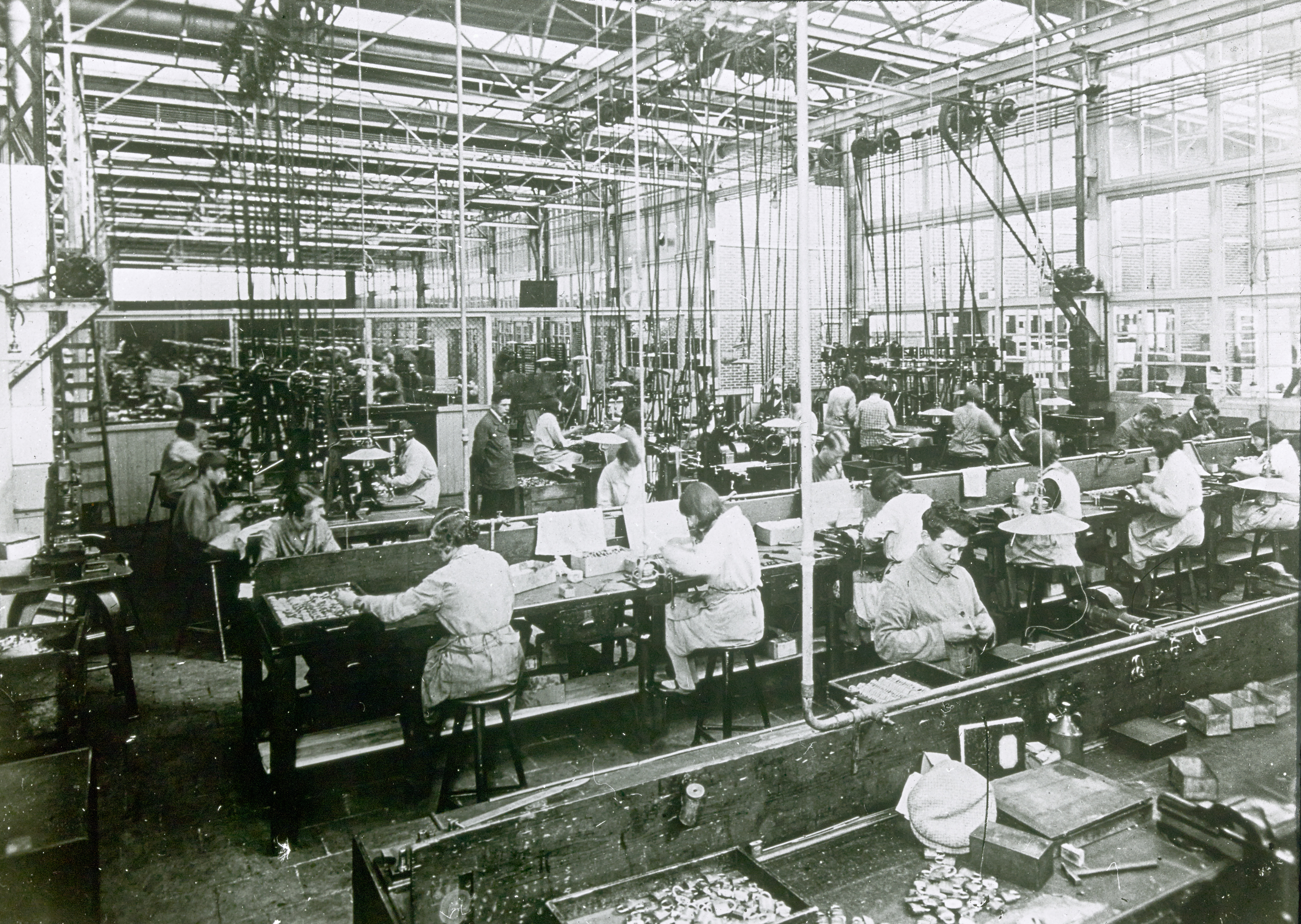 Montagehal van de Lips brandkasten- en slotenfabrieken aan de Spuiweg.