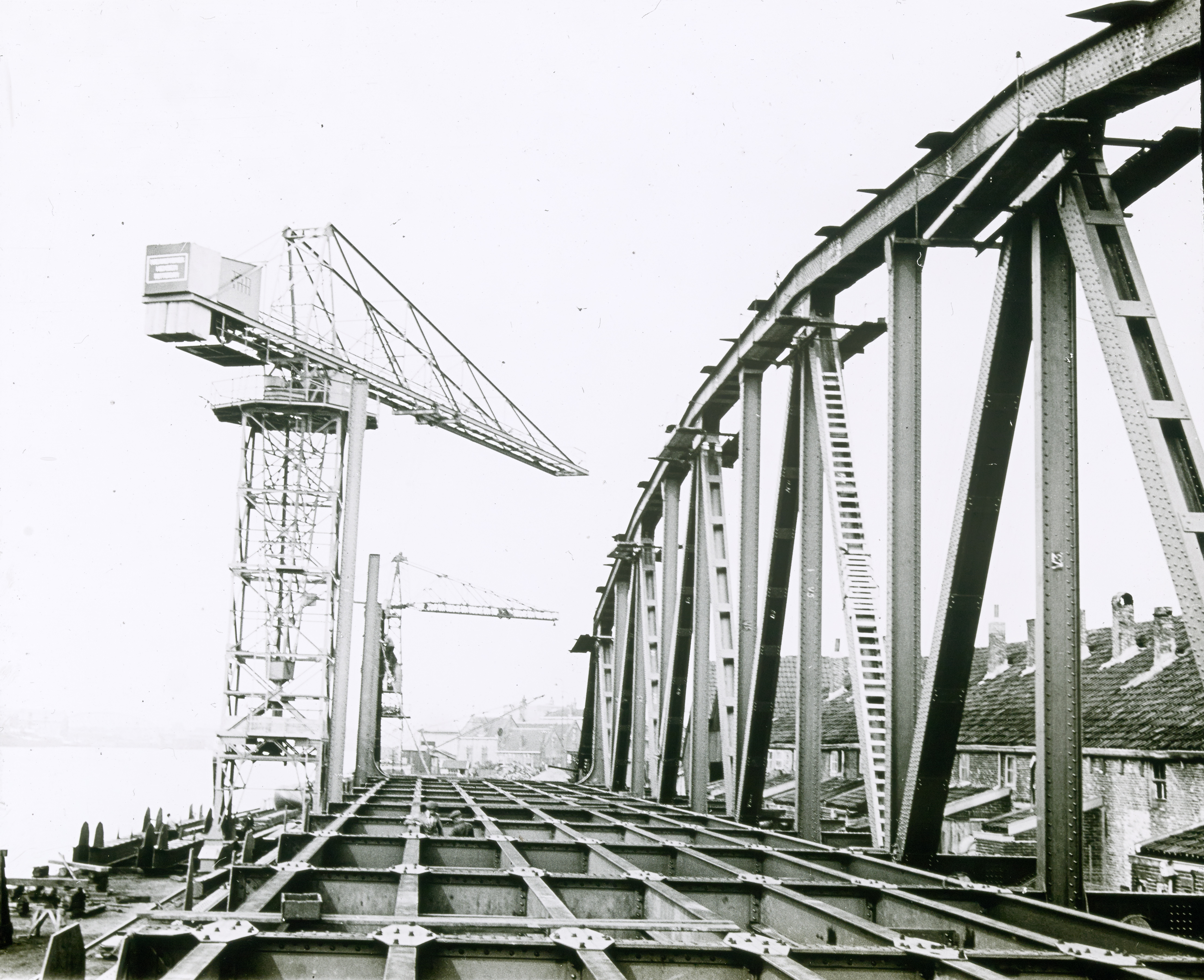 - Bouw bij Penn & Bauduin aan de 's-Gravendeelsedijk van één van de drie overspanningen voor de verkeersbrug over de Bergsche Maas bij Keizersveer.
