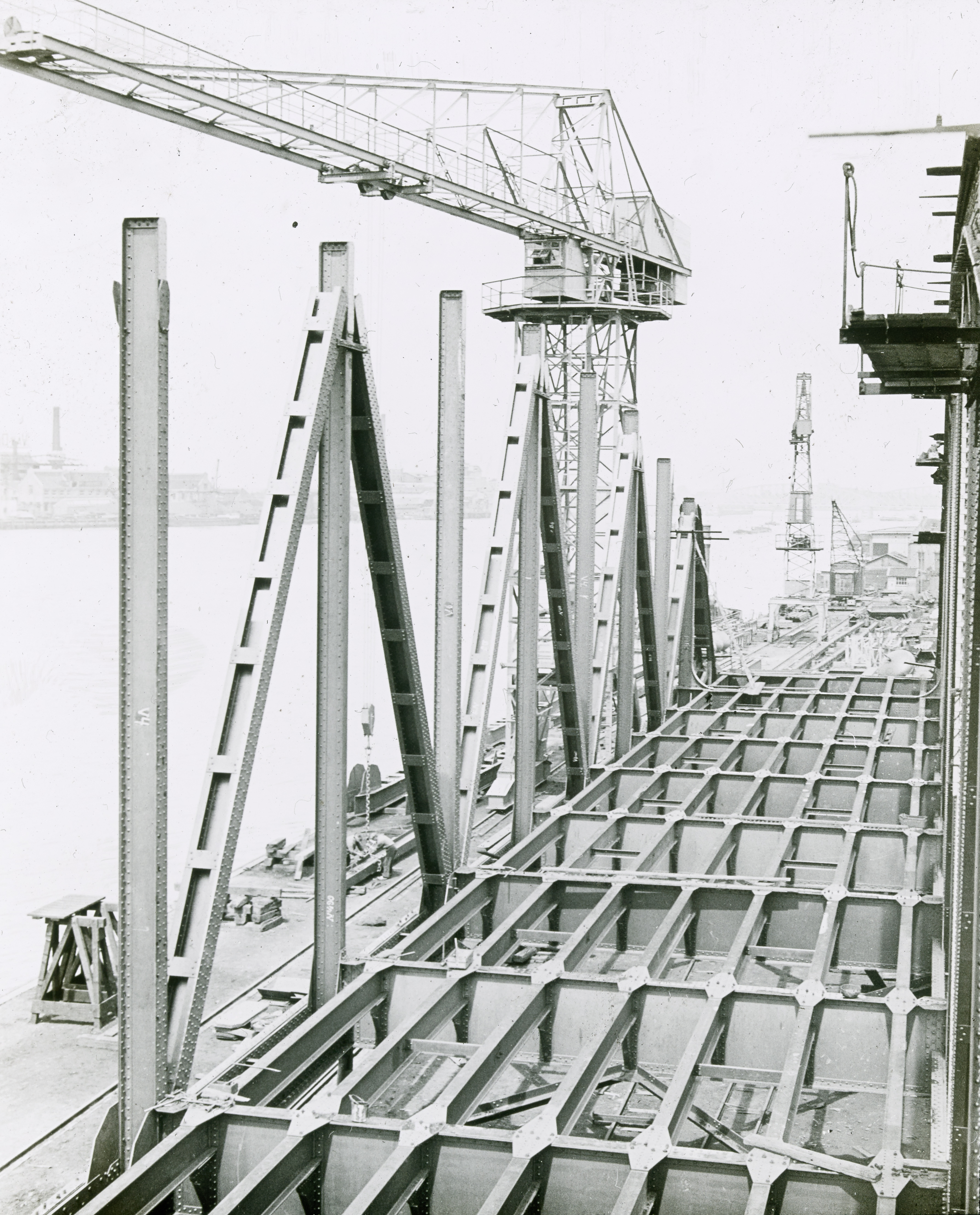 Bouw bij Penn & Bauduin aan de 's-Gravendeelsedijk van één van de drie overspanningen …
