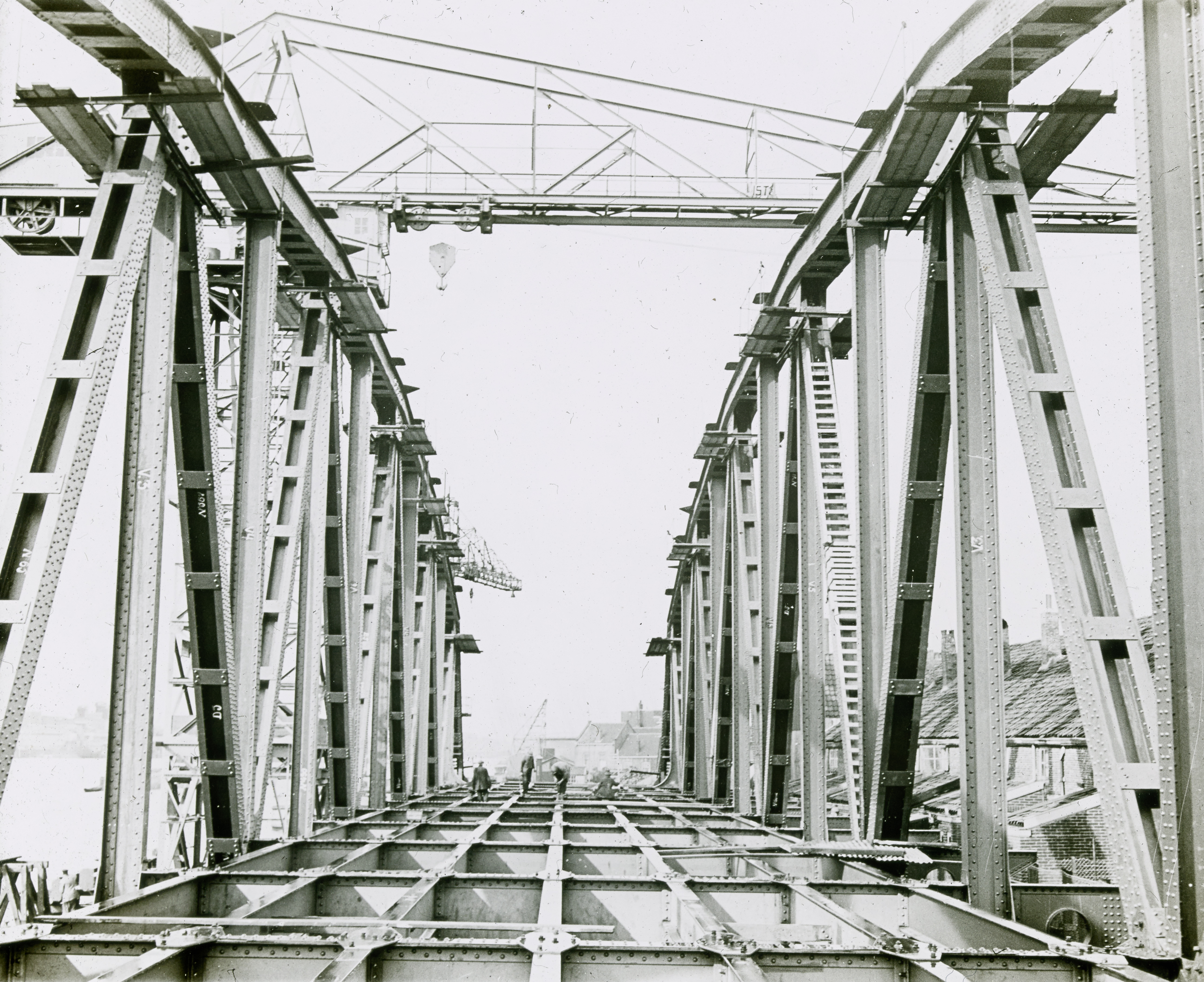 Bouw bij Penn & Bauduin aan de 's-Gravendeelsedijk van één van de drie overspanningen …
