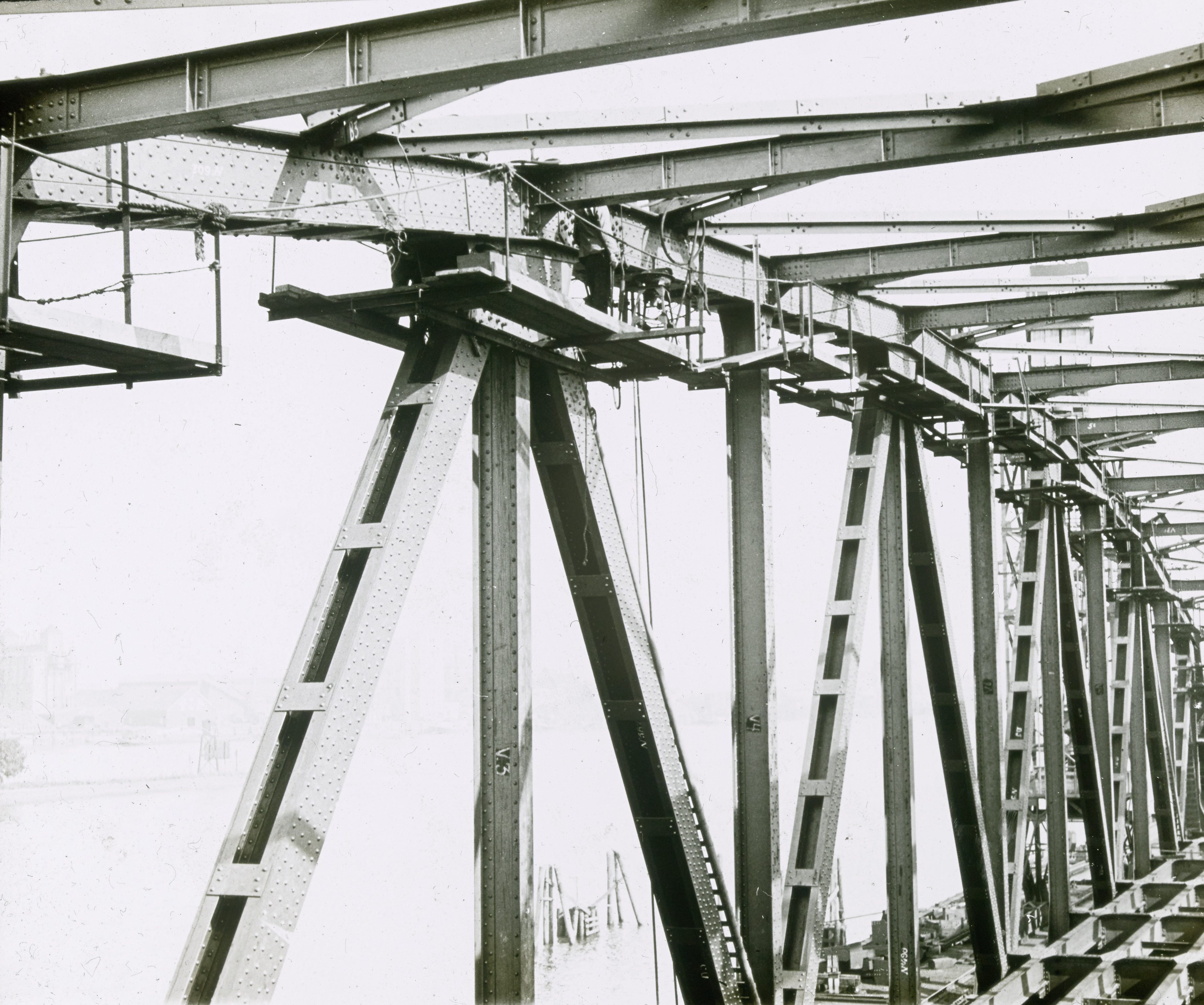 Bouw bij Penn & Bauduin aan de 's-Gravendeelsedijk van één van de drie overspanningen …