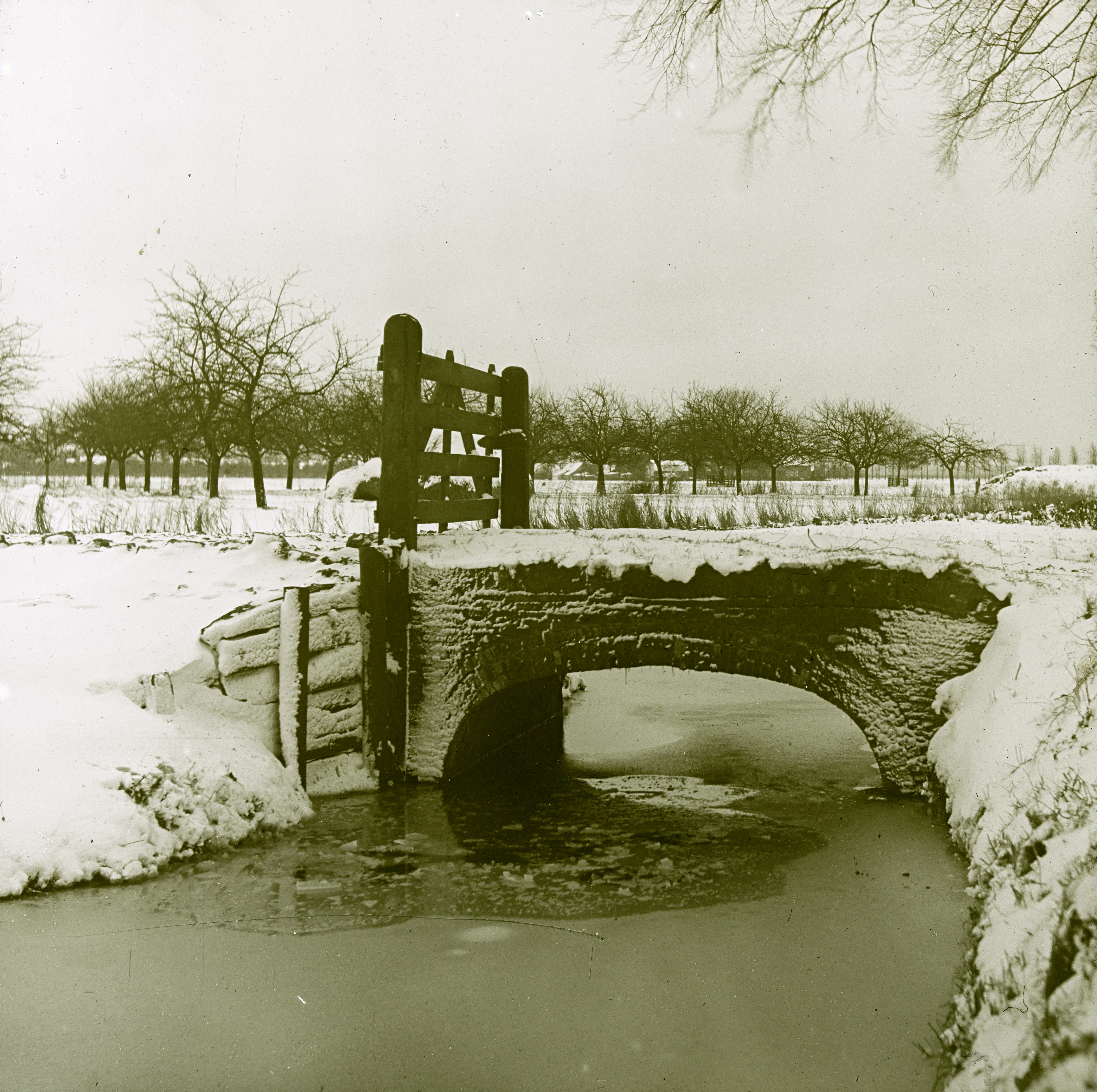 De overbrugging naar hoeve Rusthout op de Dubbeldamseweg Zuid (later Dordwijklaan) tegenover landgoed Dordwijk.