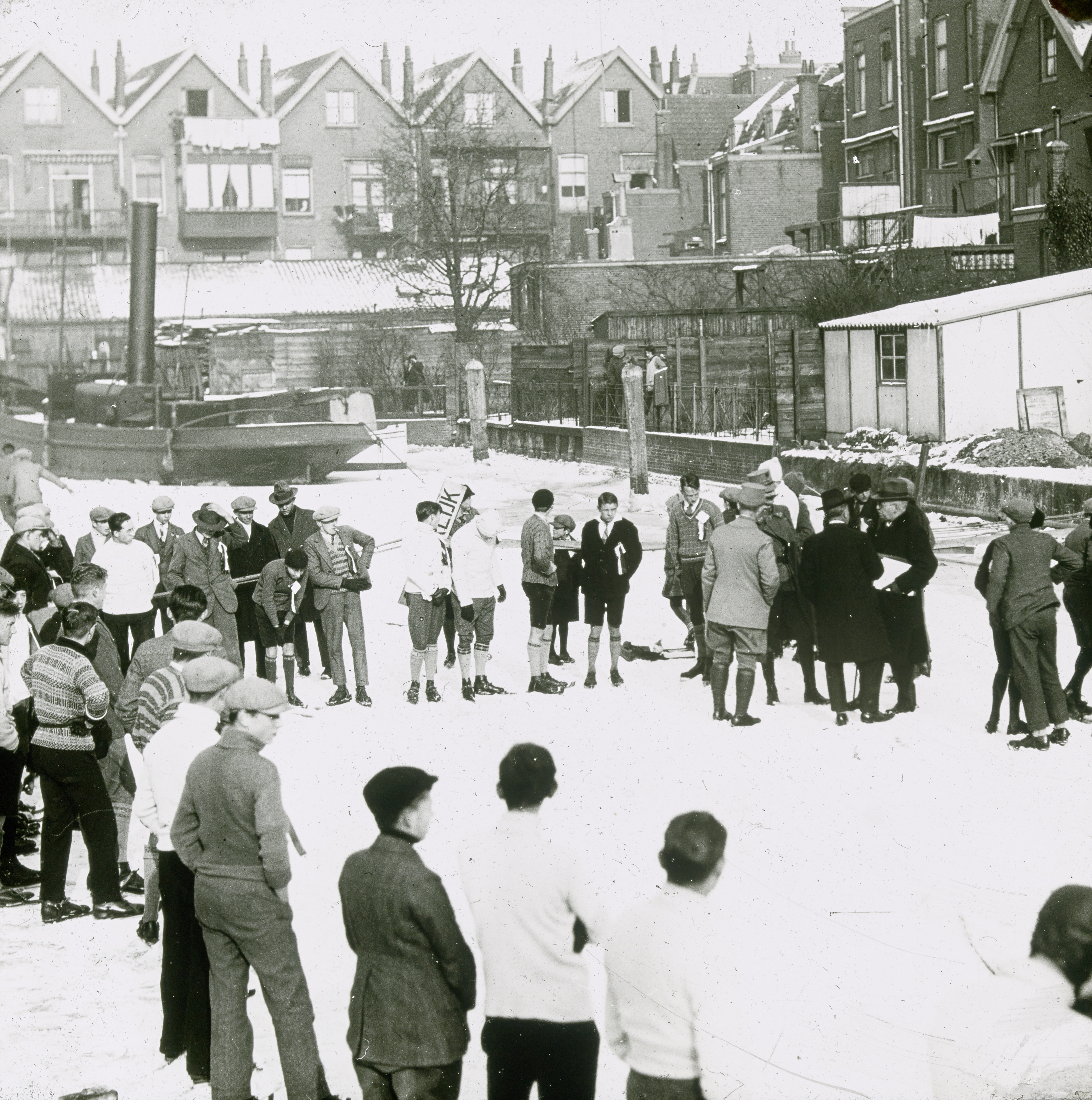 - Dichtgevroren Spuihaven nabij de Noordendijk. Rechts het Kromhout.