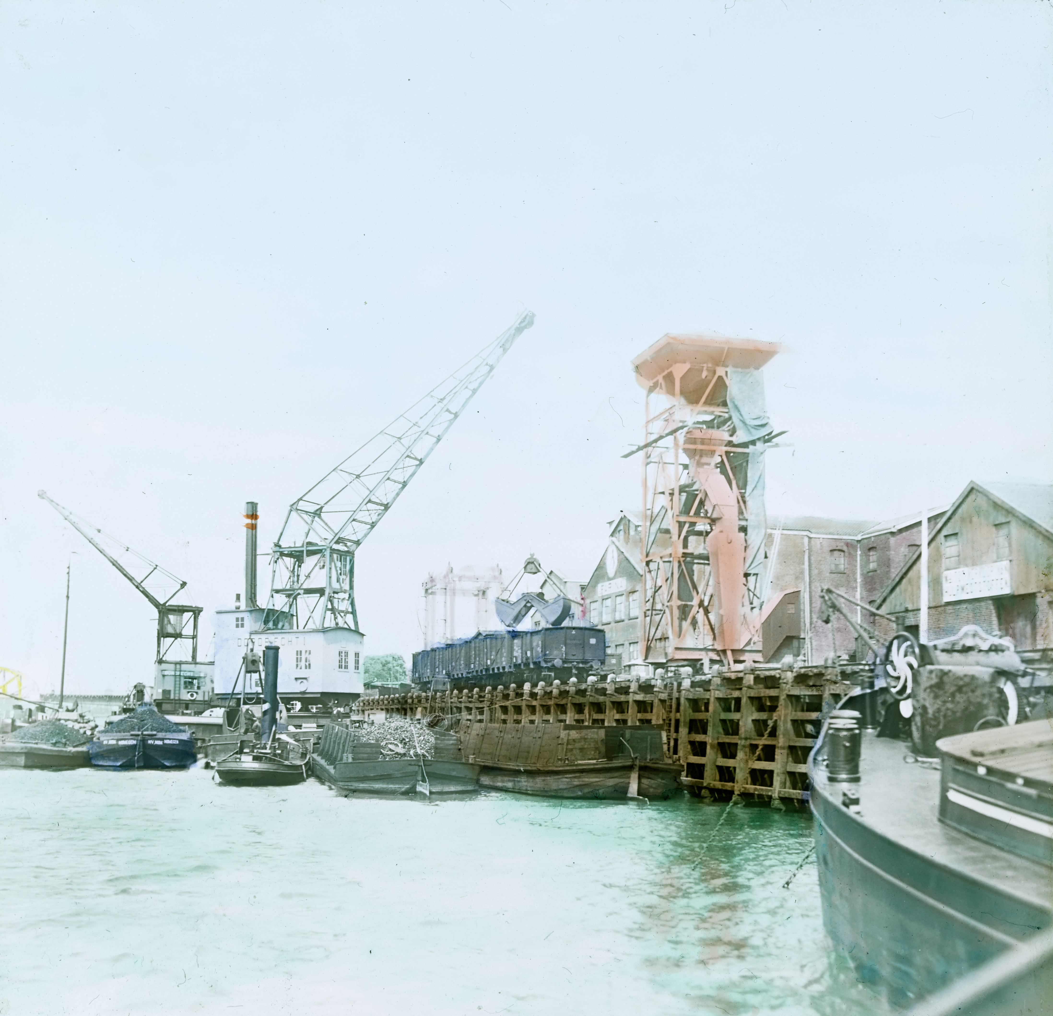 - (steen)kolenhandels bruggen fabrieken goederentreinen hijskranen vrachtboten