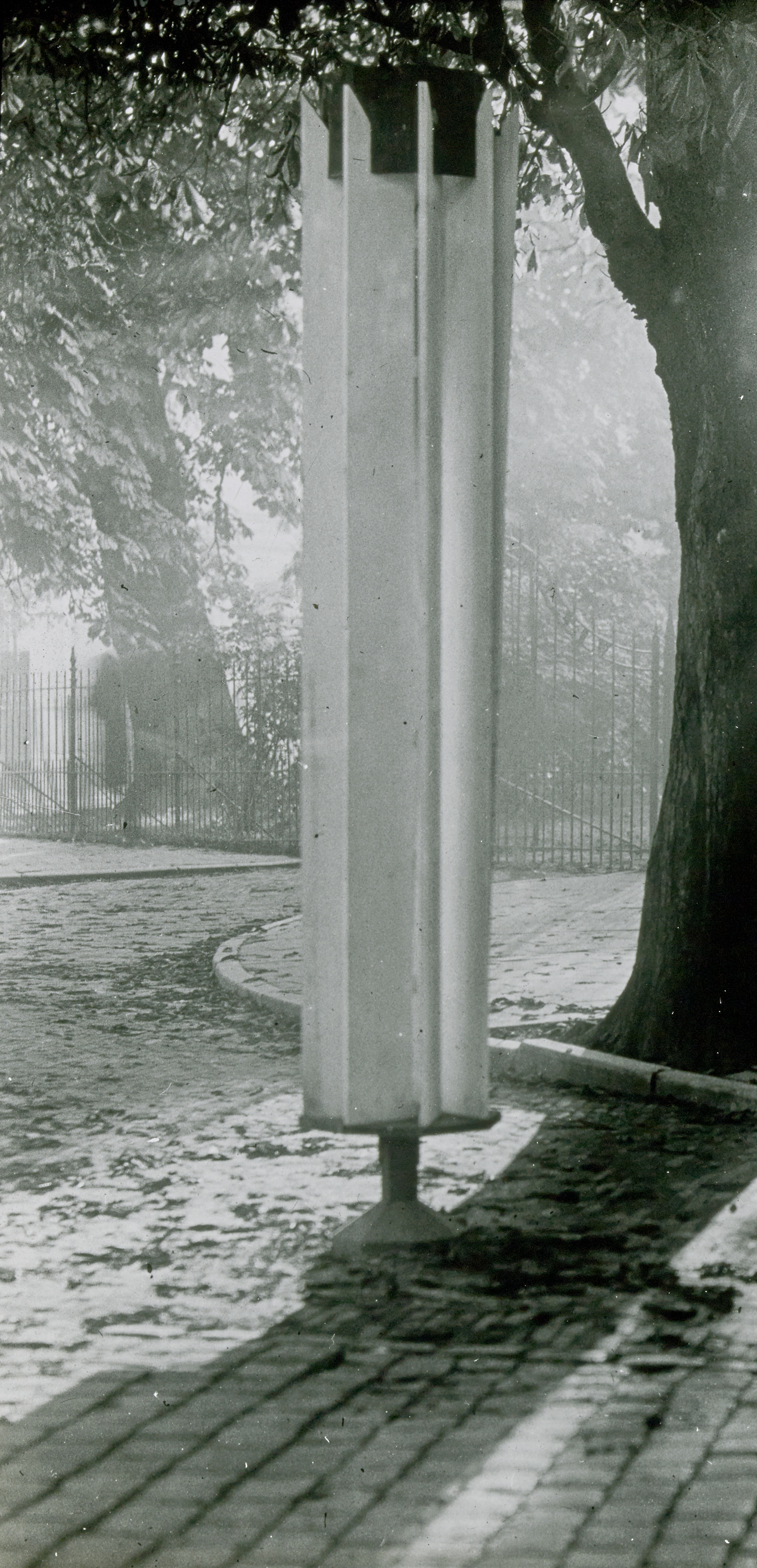 Lichtobject zoals die langs de Johan de Wittstraat stonden tijdens de lichtweek van 1930 ter gelegenheid van de Zeehaven. Zie ook 552_405933. Gezien de vorm denk ik dat het de bedoeling was dat het bij wind roteerde om de verticale as.