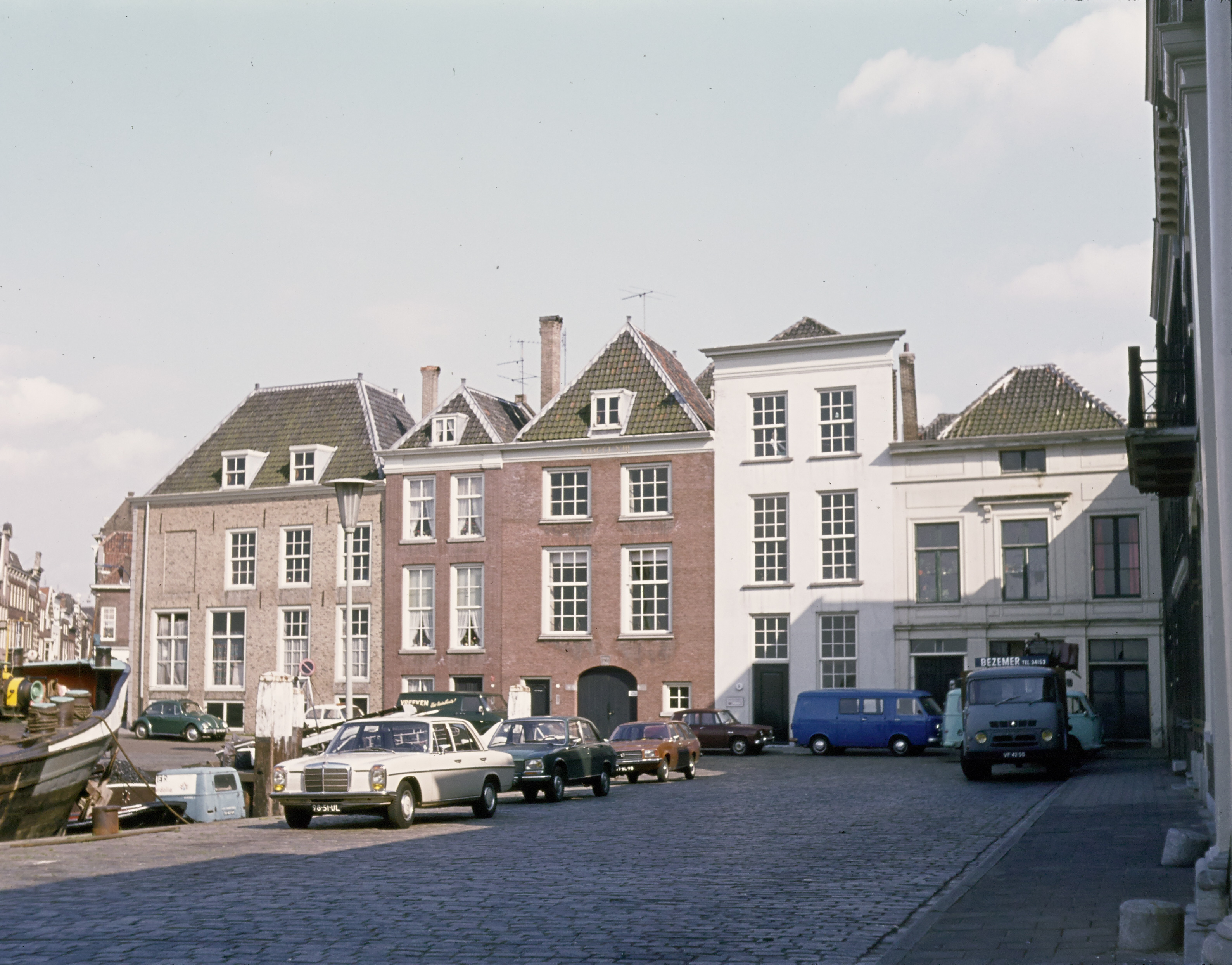 Een vrachtwagen van de aldaar (nr 9) destijds gevestigde Brandstoffenhandel en bunkerbedrijf Fa. P. Bezemer & Zn. en een bestelbusje van Vreeken's Zaadhandel welke is gevestigd om de hoek op de Voorstraat.