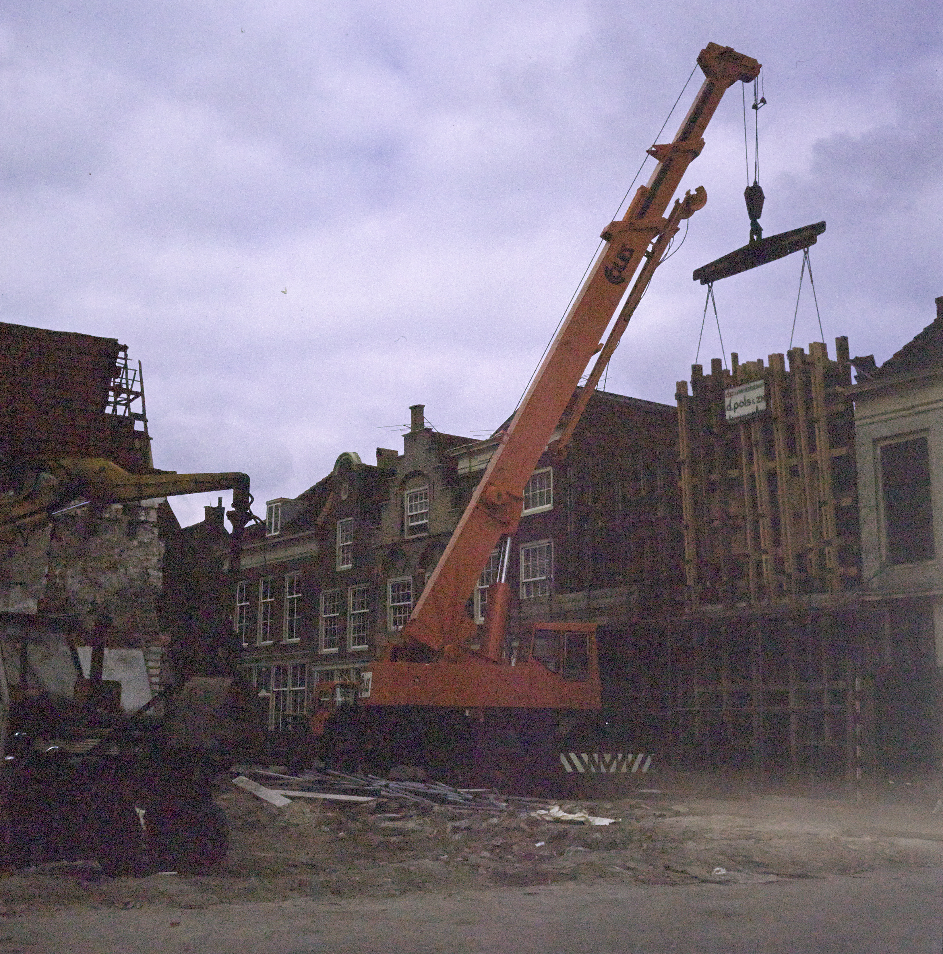 Verplaatsing van een gevels in de Nieuwstraat. De gevels zijn afkomstig van gesloopte …