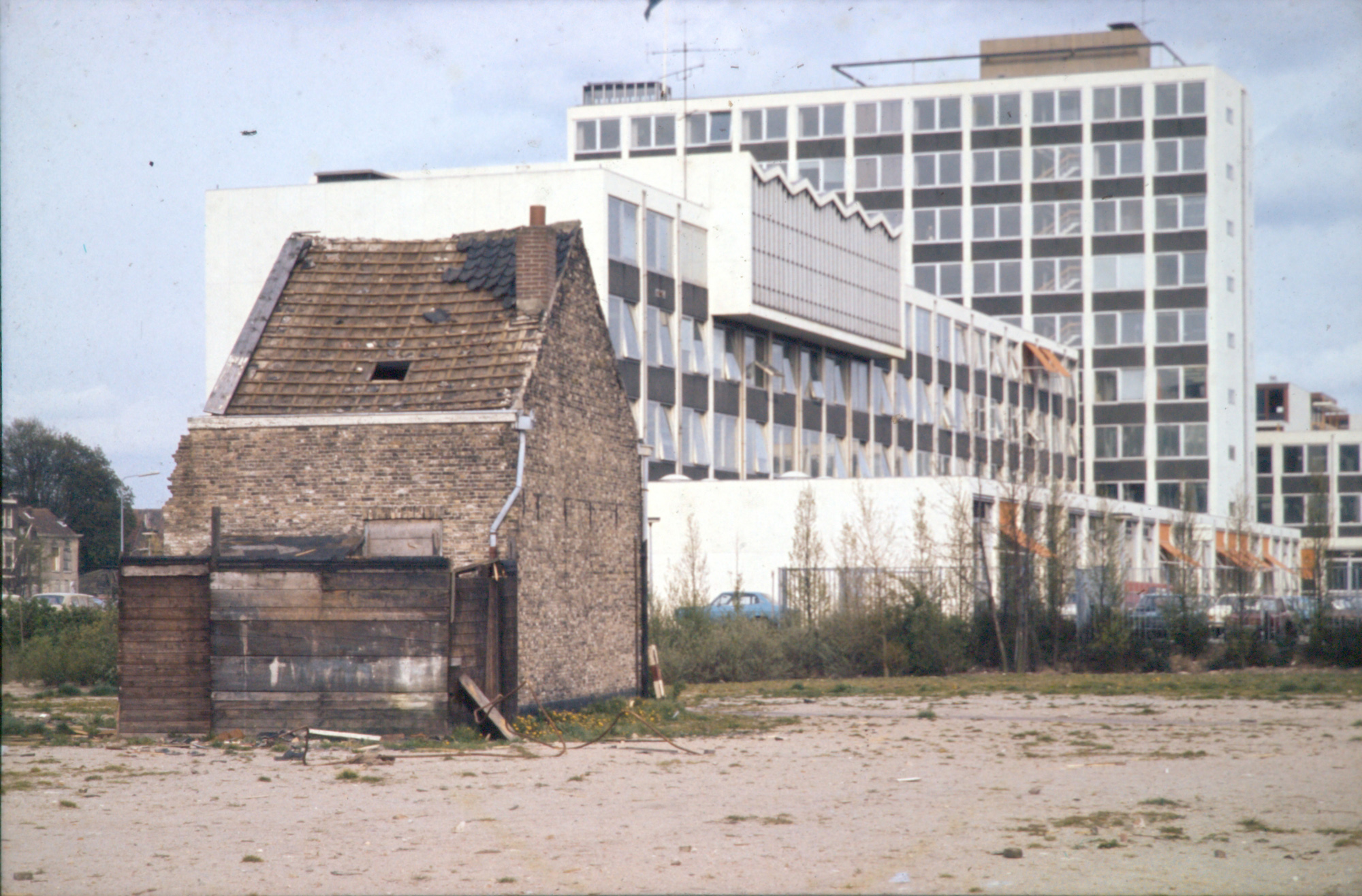 Het laatste te slopen pand aan de Looierstraat nabij het stadskantoor (achterzijde) aan de Spuiboulevard.