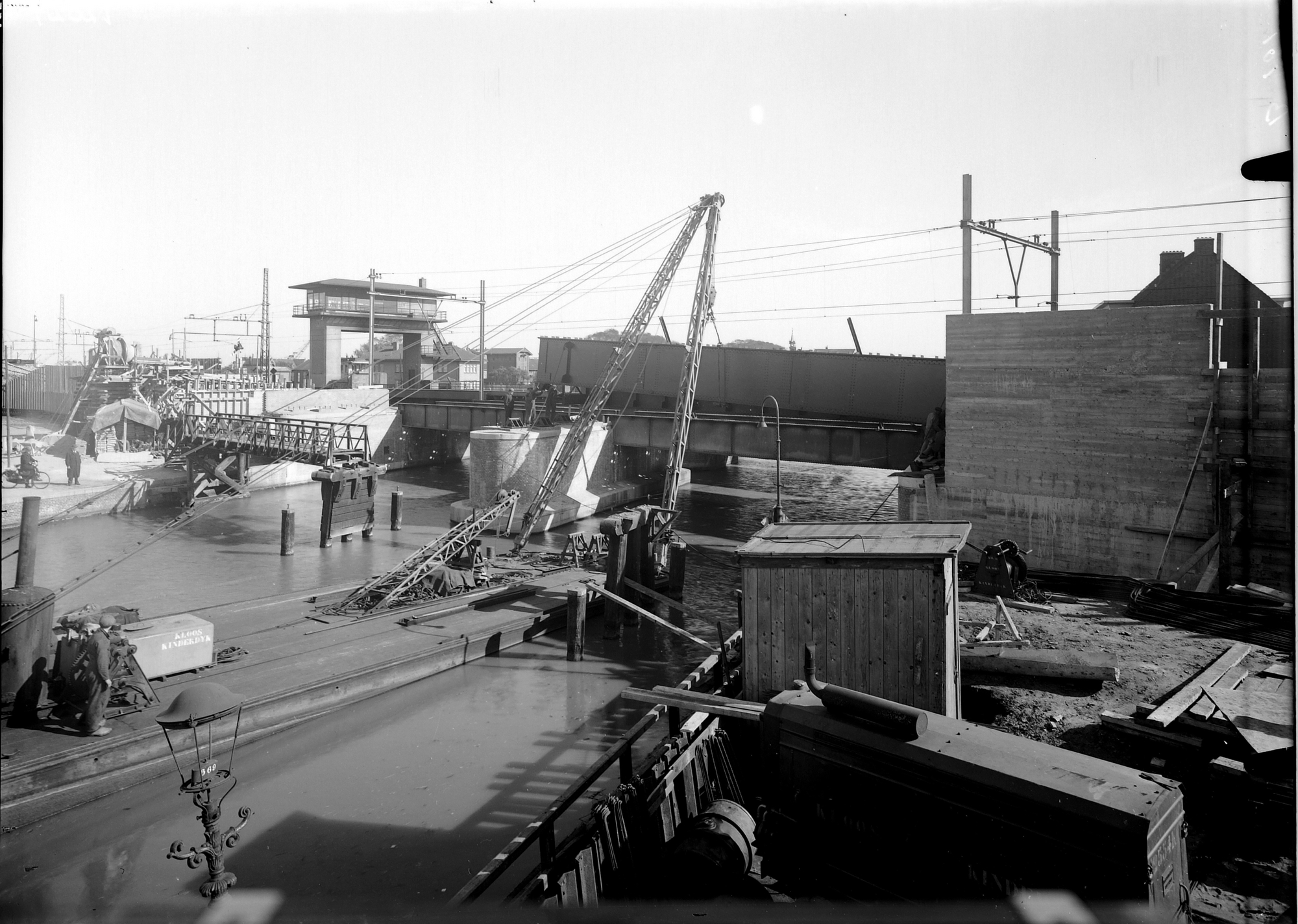 Zie 552_730013: Dit is het plaatsen van een overspanning in de Zeeburgerpad-spoorbrug, over het Lozingskanaal in Amsterdam-Oost, ergens tussen 1934 en 1939. Uitgevoerd in het kader van de Spoorwegwerken Oost. Op https://archief.amsterdam/beeldbank/detail/b603a7f3-bf41-1f0c-27ff-a2a855845dc4 is het seinhuis boven de sporen goed herkenbaar.
