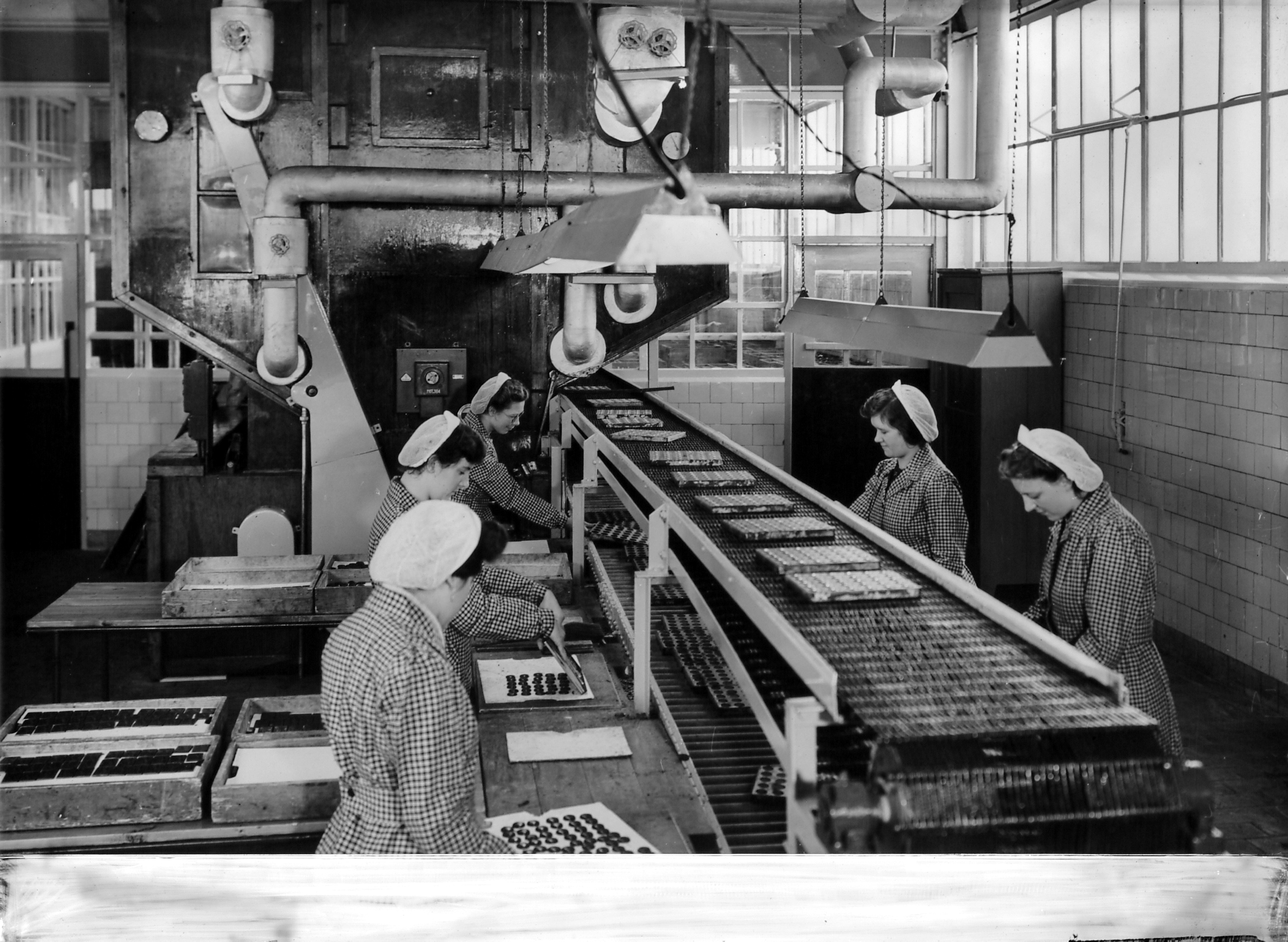 - Vervaardiging van bonbons in de chocalade- en biscuitfabriek Victoria aan de Korte Parallelweg.