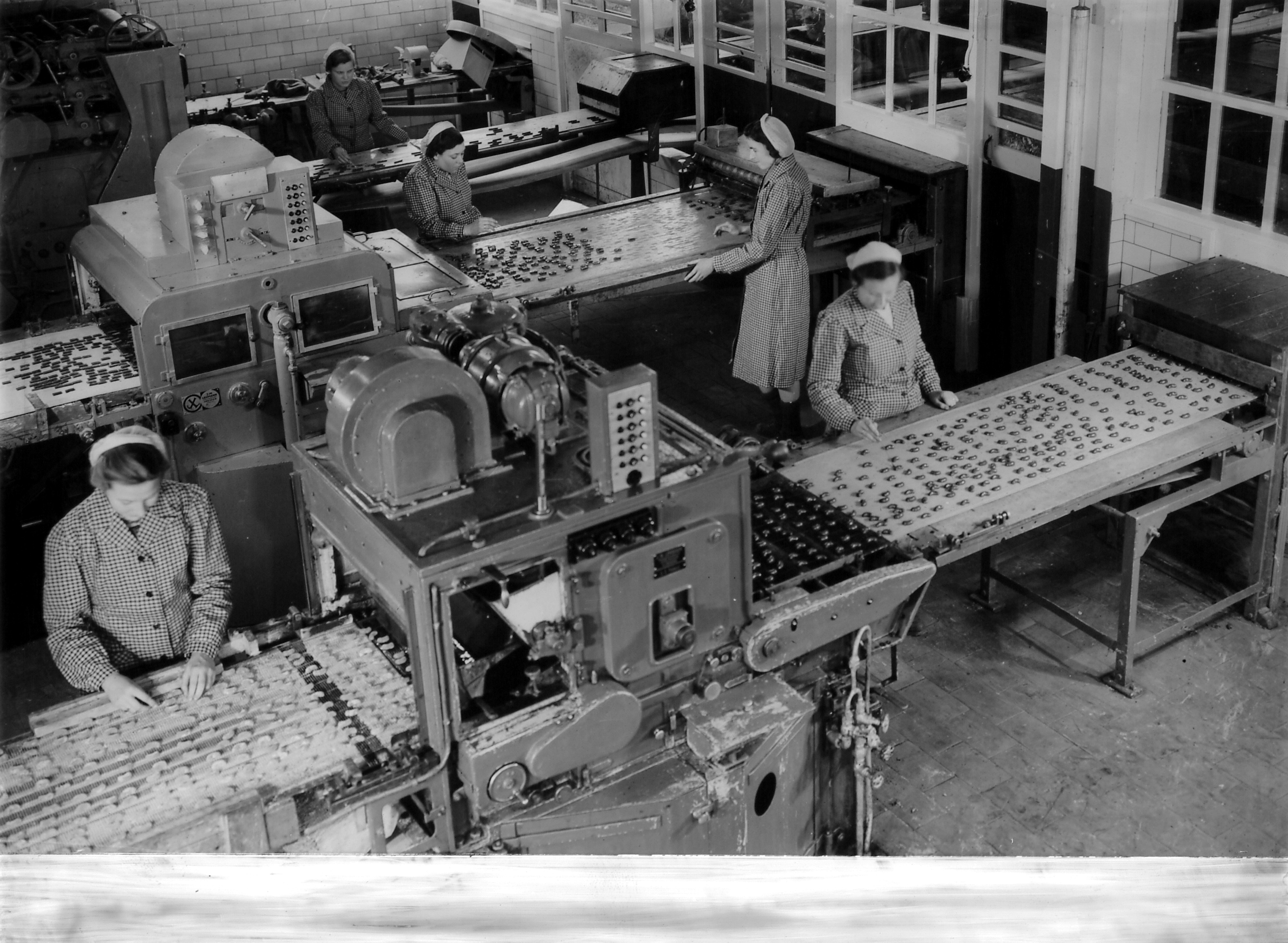 Chocolade afdeling Victoria biscuit en chocalade fabriek aan de Korte Paralelweg in Dordrecht. (foto is gespiegeld!!).