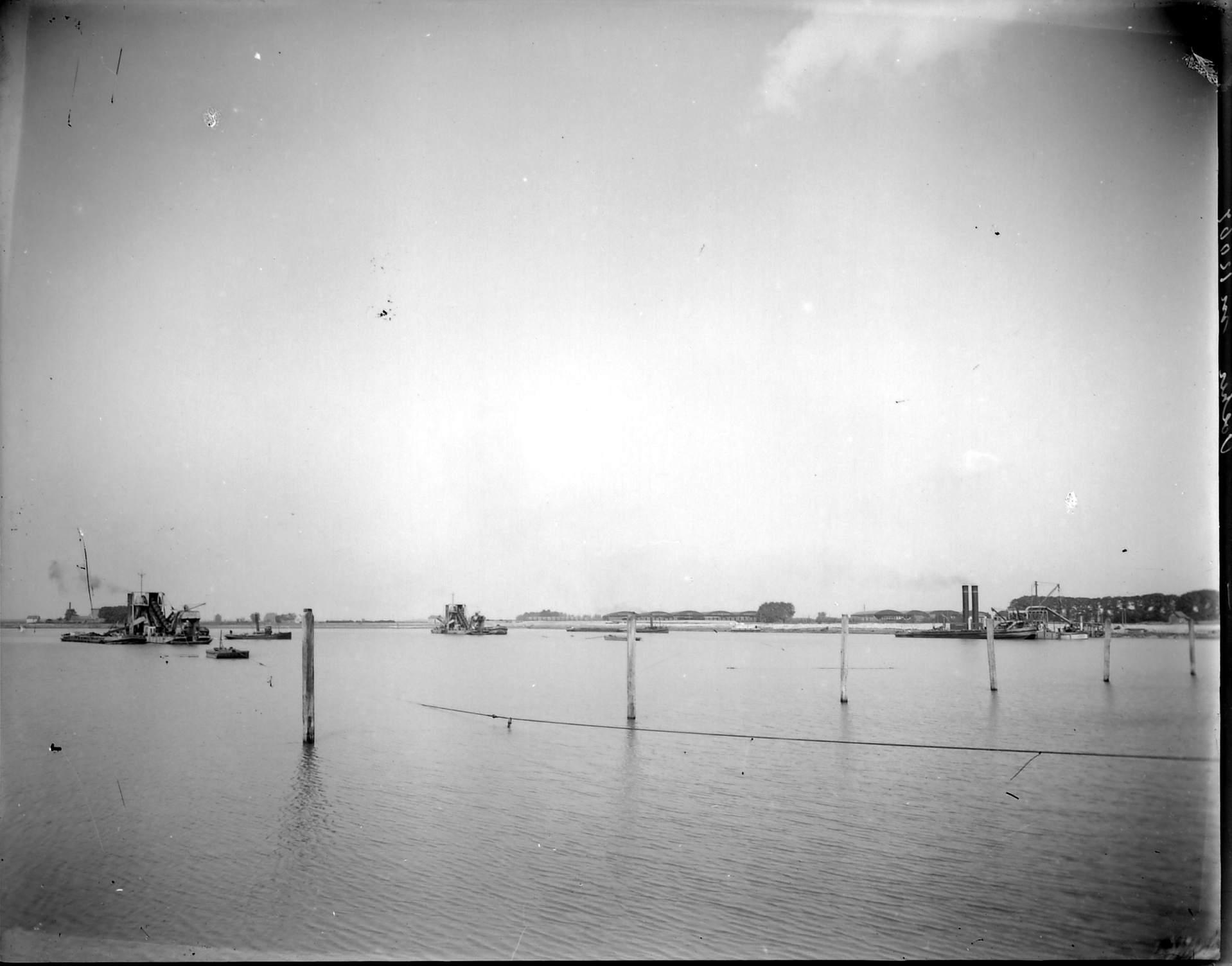 Het graven van de Wilhelminahaven, gezien naar het westen. Op de achtergrond de …