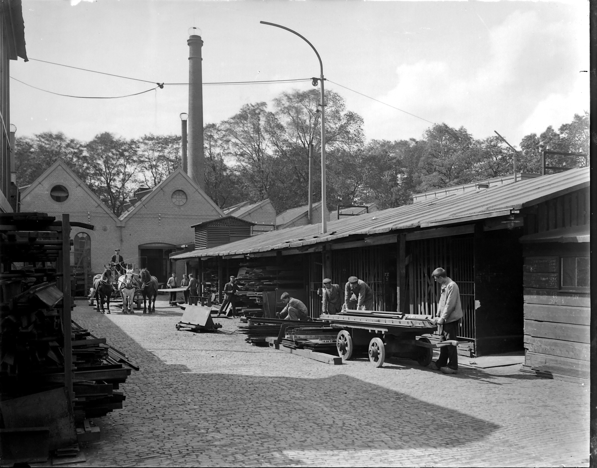 - fabrieken fabriekspijpen / schoorstenen paard-en-wagens personeel / werknemers