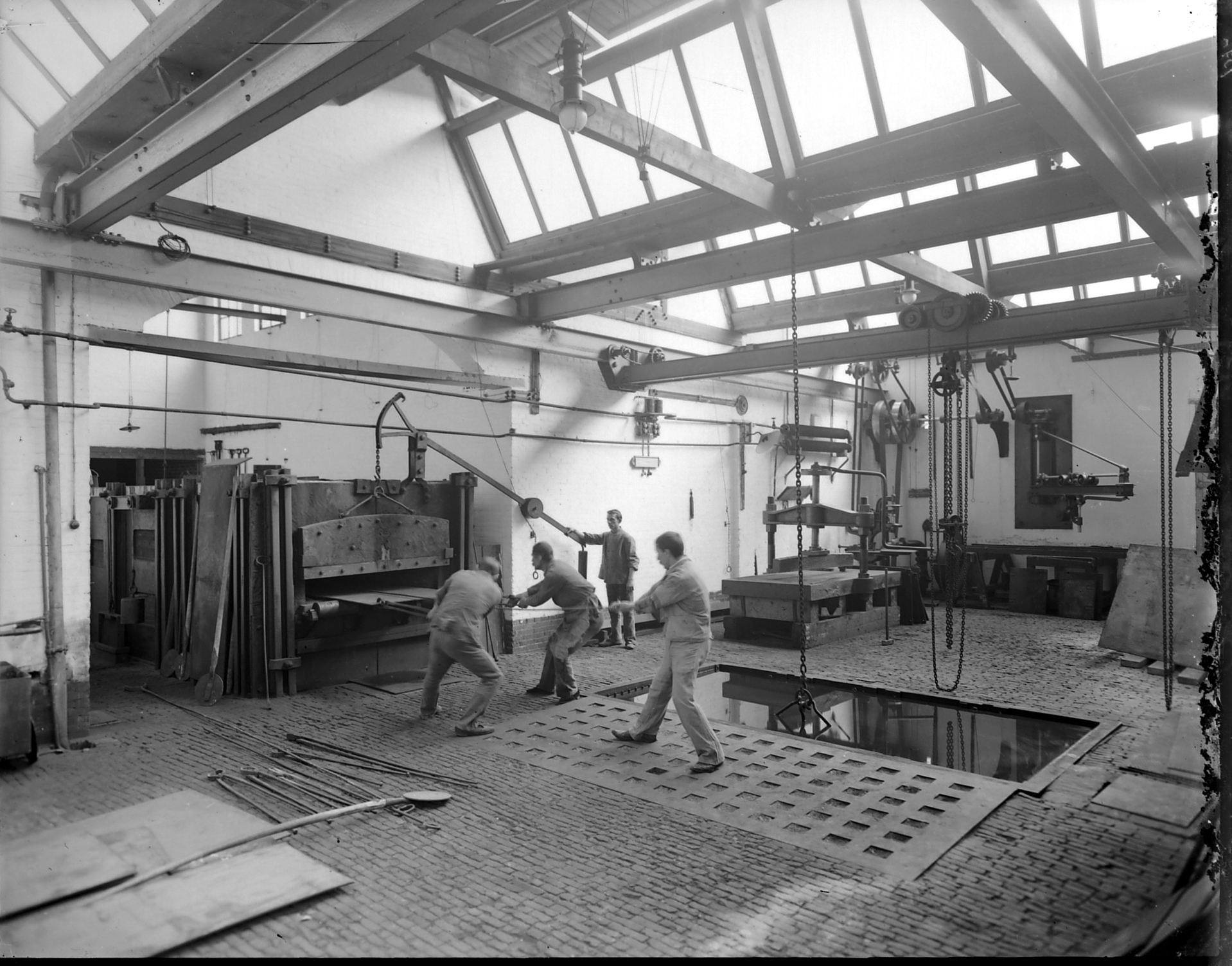 - Oven in de fabriekshal van Lips Brandkastenfabriek aan de Spuiweg.