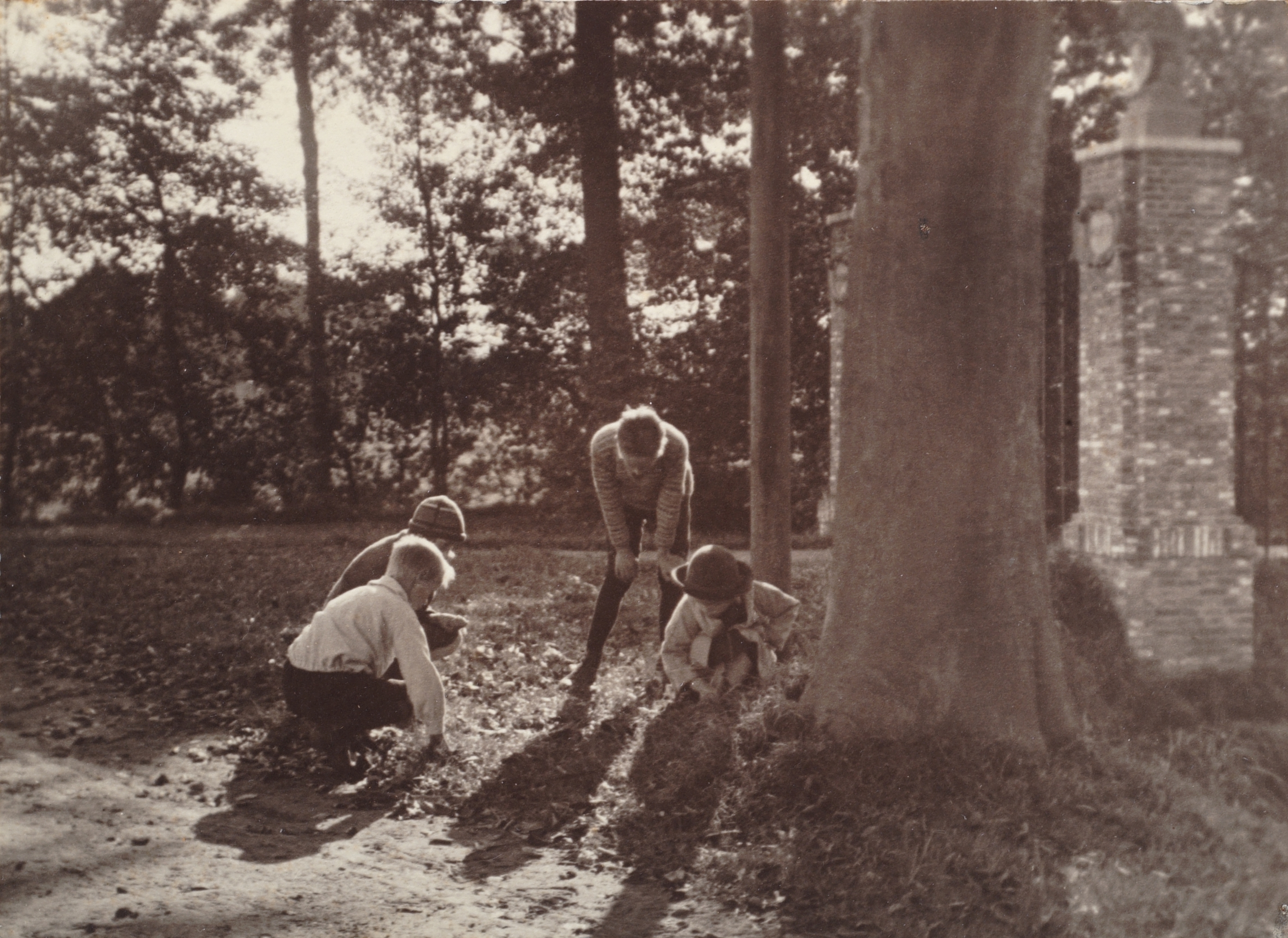 Beukennootjes rapen bij de toegangspoort van kasteel Crabbehof aan de Talmaweg.