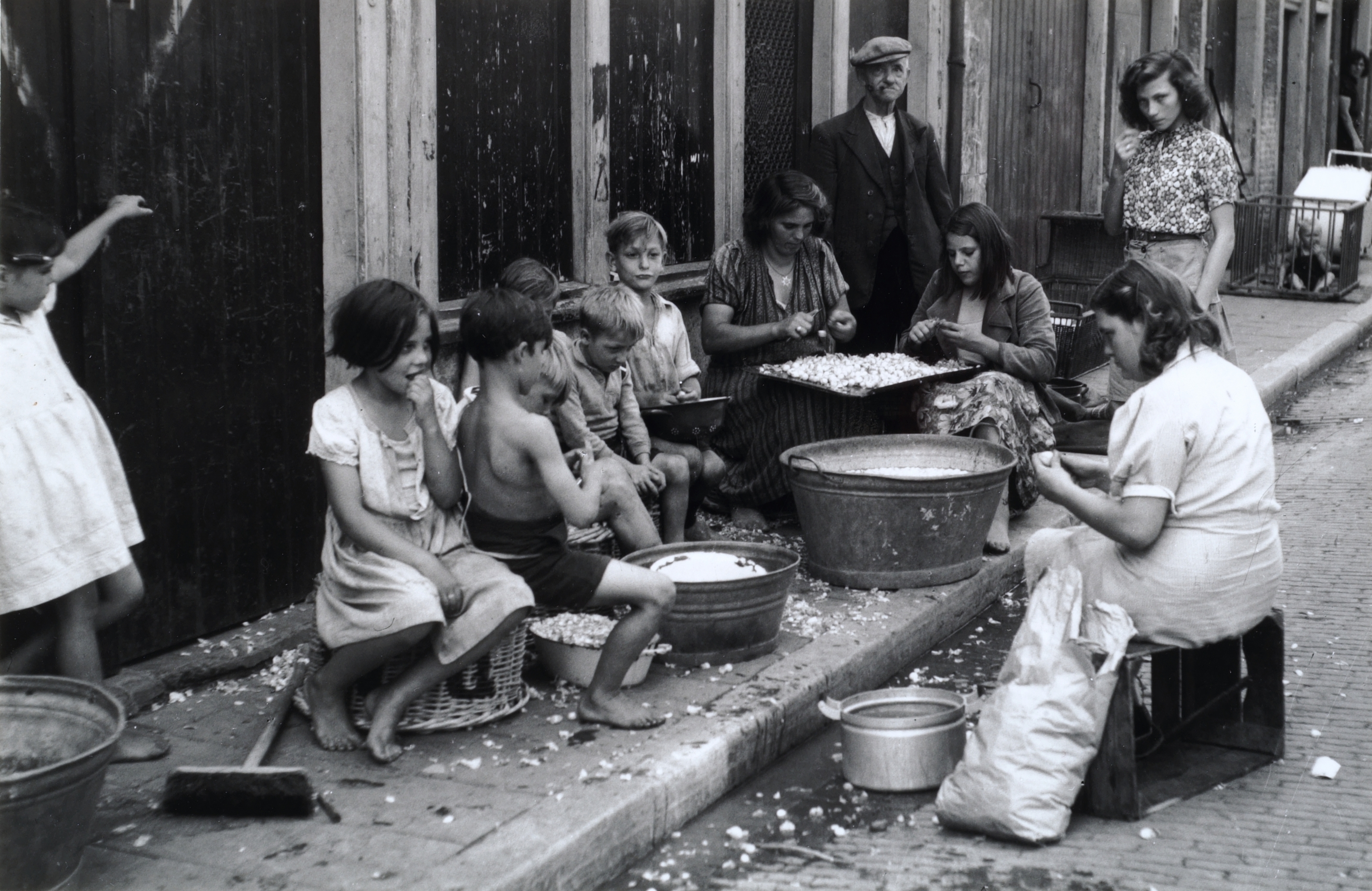 - Bewoners van de Mariënbornstraat pellen uien.