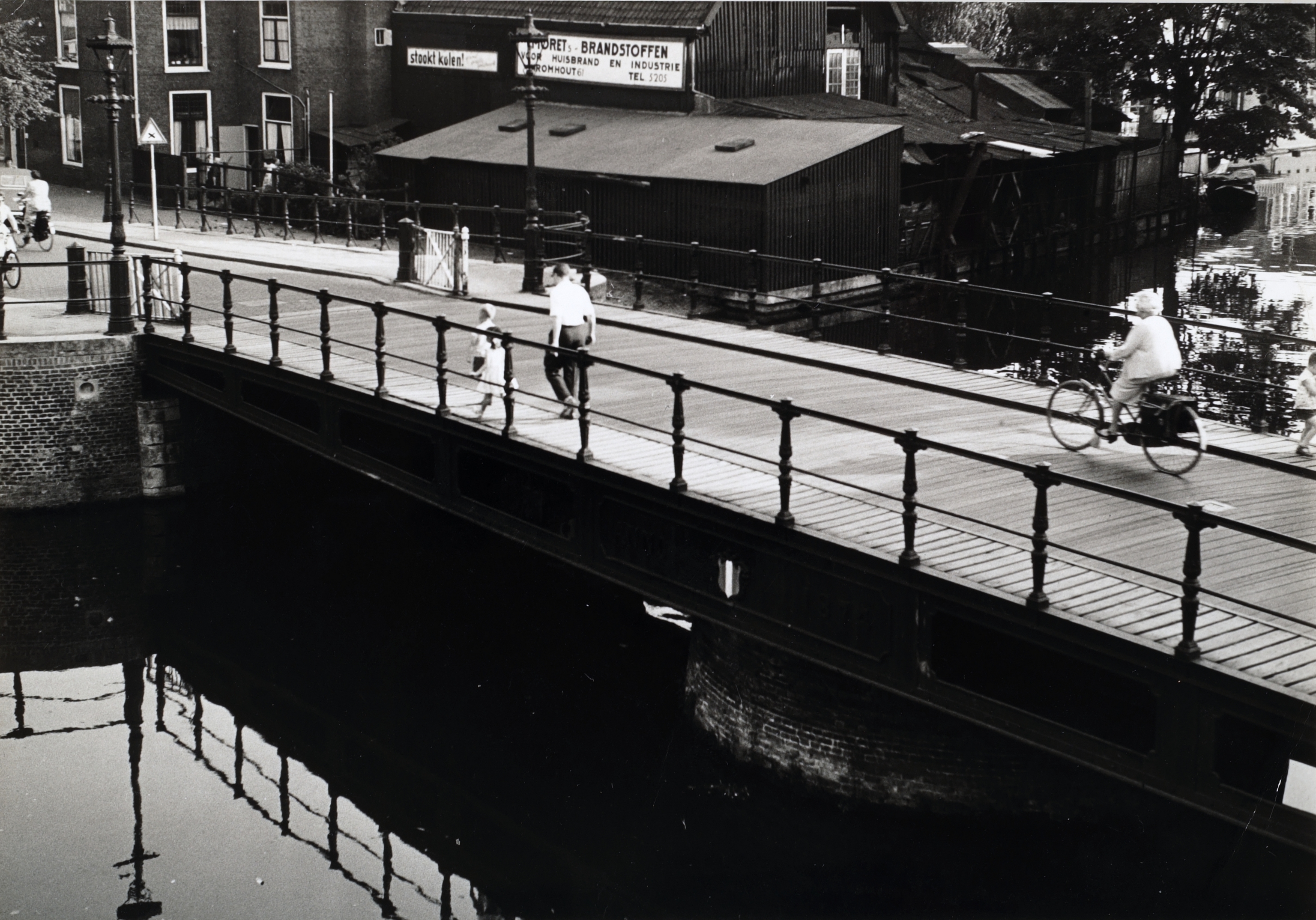 - Brandstoffenhandel Moret bij de Sint Jorisbrug over de Spuihaven, gezien richting Kromhout/St. Jorisweg.
