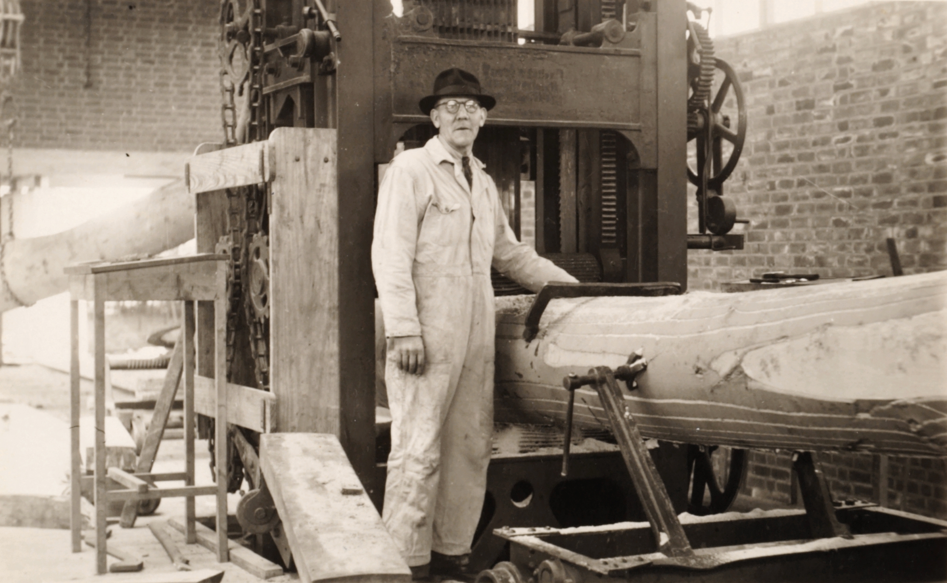 Zaagmachine bij houthandel Berger aan de Weeskinderendijk.