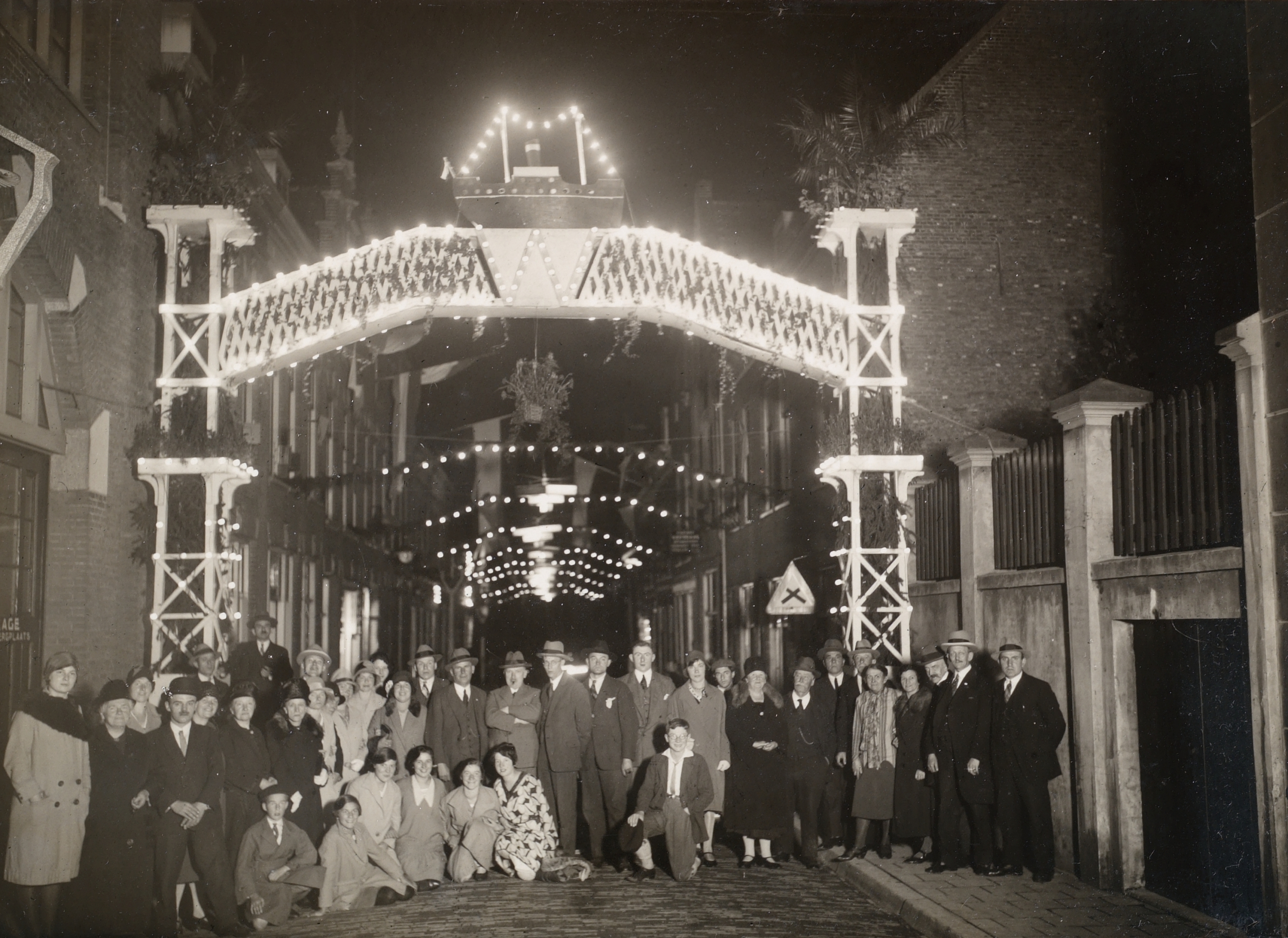 Mooi Ad! Het betreft hier de Septemberfeesten, welke gehouden werden vanwege de opening van de nieuw ingerichte zeehaven door H.M. Koningin Wilhelmina op 25 september 1930. De feestelijkheden bestonden o.a. uit een zogenaamde lichtweek waarbij belangrijke gebouwen, monumenten en straten, werden verlicht. Diverse buurtcommissies in de stad waren verantwoordelijk voor versieringen zoals hier in de Lombardstraat. De lichtweek begon 23 september 's avonds om half acht. Op 555_13534 kijk je vanaf het Stadhuisplein de Lombardstraat in, maar vind toch overdag de versiering een stuk minder mooi. :)