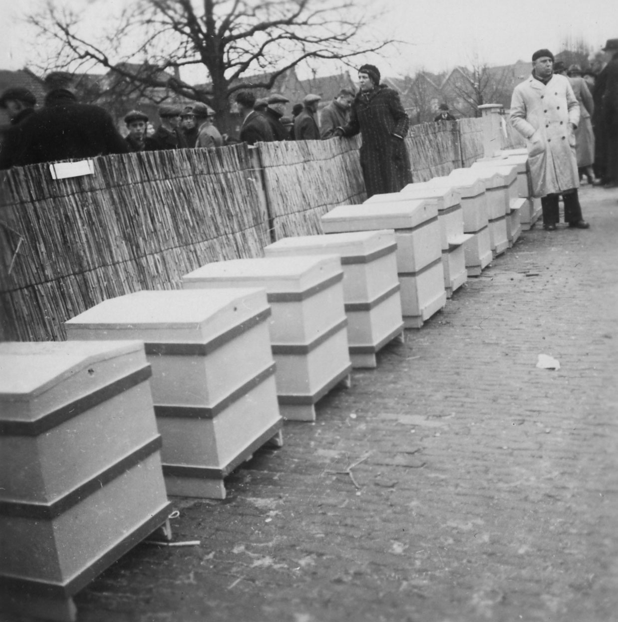 Zo kan ik me herinneren, maar dat was zo'n 20 jaar later, dat ik als kleine jongen met m'n moeder en broertje in dat gebouw, boven op zolder, in een ruimte afgeschoten met grof kippengaas, kleding kreeg uitgereikt door twee uitermate vriendelijke dames van de Sociale Dienst die daar ook gevestigd was. Van één van de dames kan ik mij de naam nog herinneren, juffr. Gordijn. Maar ik dwaal af :) De eerste bijenmarkt werd bij wijze van proef voor de eerste keer gehouden op het voormalige terrein van de veemarkt op 14 april 1939. Met name de fruittelers op de Zeeuwse en Zuid Hollandse eilanden vormden de doelgroep, de imkers kwamen hoofdzakelijk uit Brabant waar sprake was van een overschot aan bijenvolken. Men sprak toen dus van de Voorjaarsmarkt op het voormalig Veemarkt-terrein..
