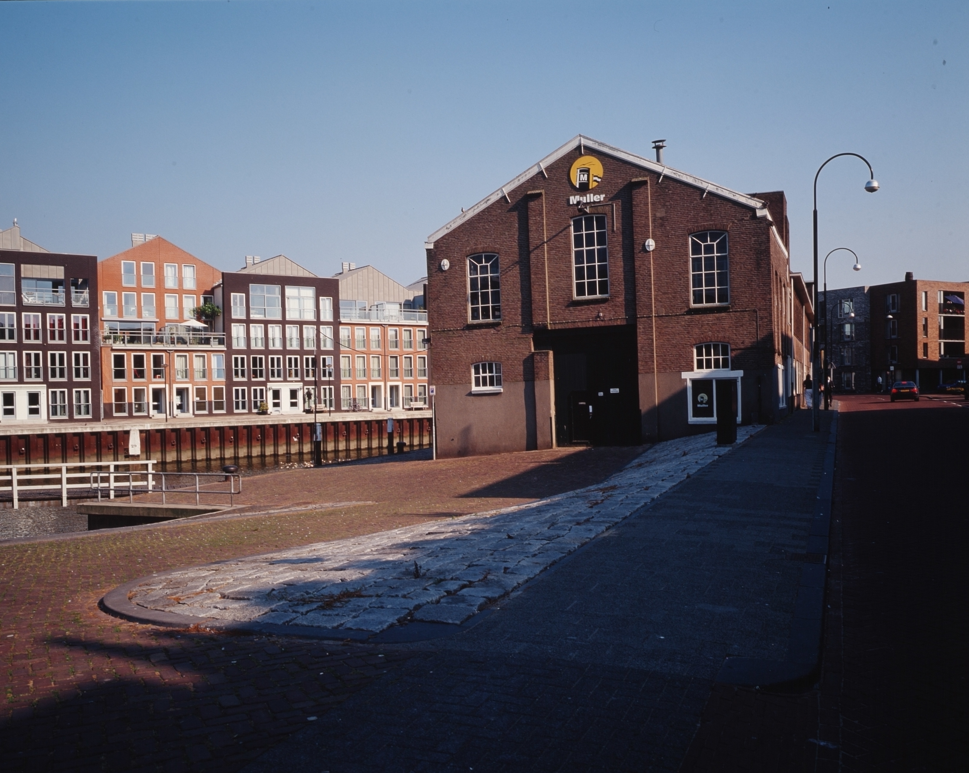 - Rederij Muller tussen Riedijkshaven en Torenstraat. De huizen links staan aan de Schuttevaerkade.
