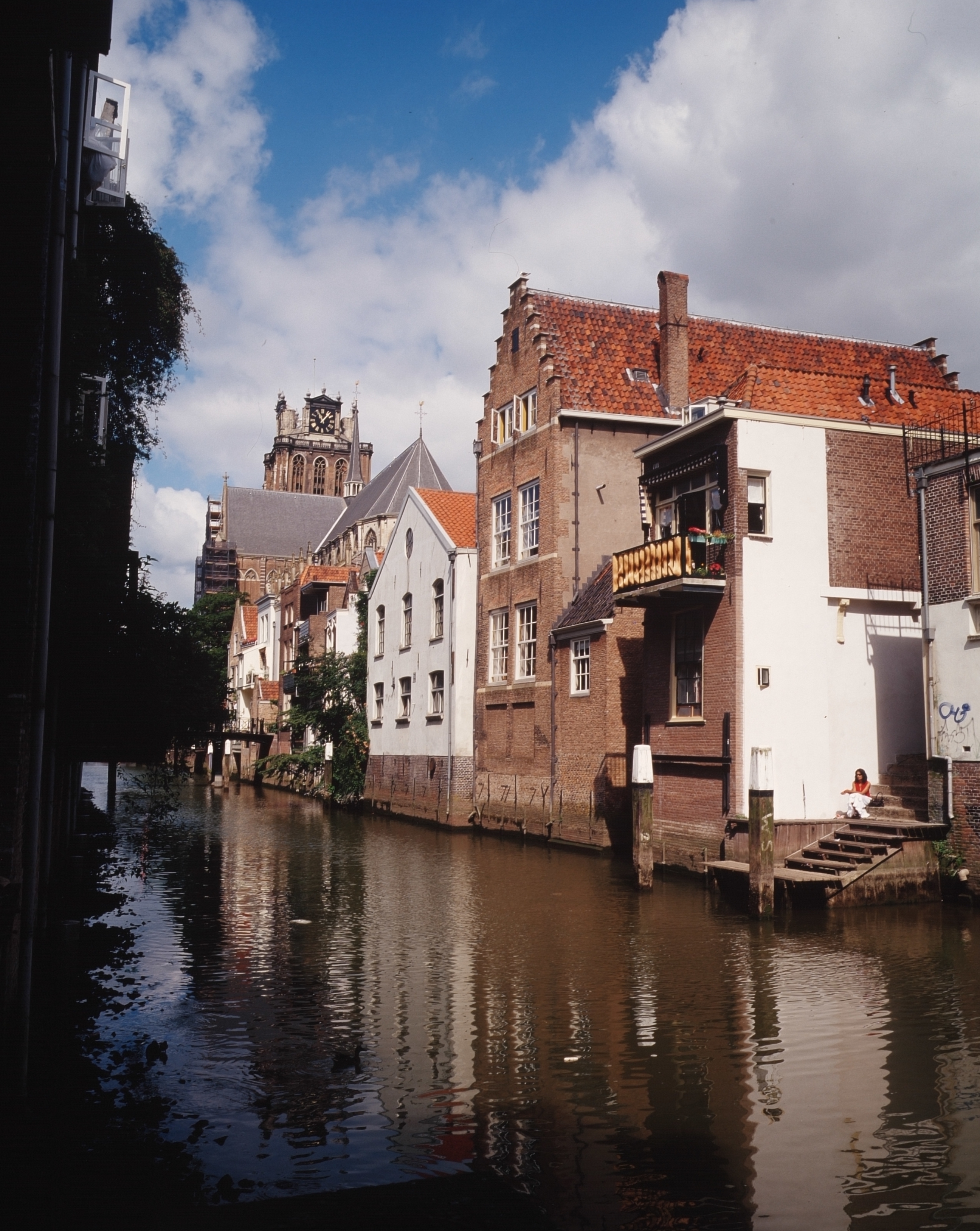- Voorstraatshaven vanaf de Botgenssteiger richting Grote Kerk. Rechts de Grotekerksbuurt, de trap is de Manhuissteiger.