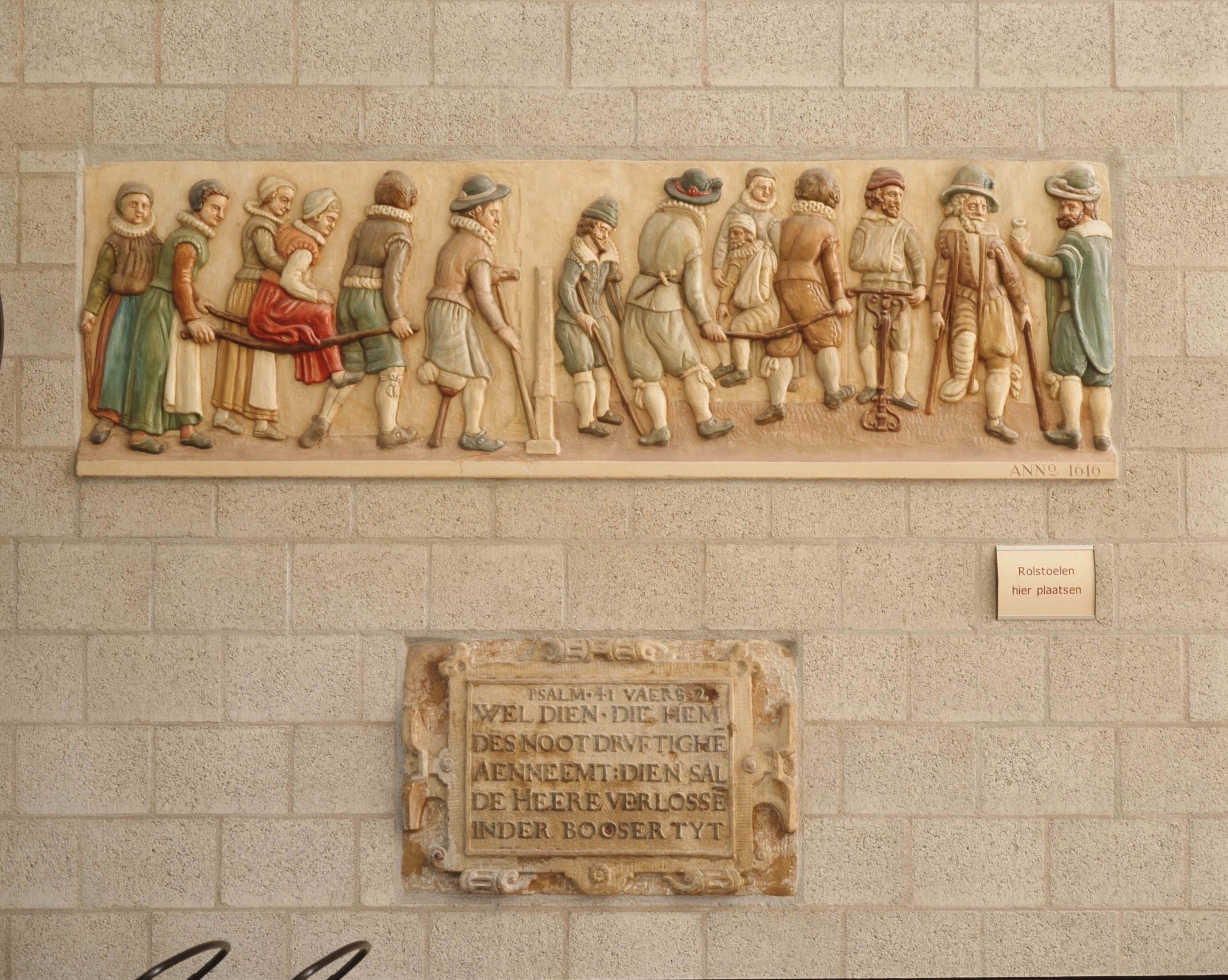 Gevelsteen van het Gasthuis in de Visstraat hier overgeplaatst naar het Albert …