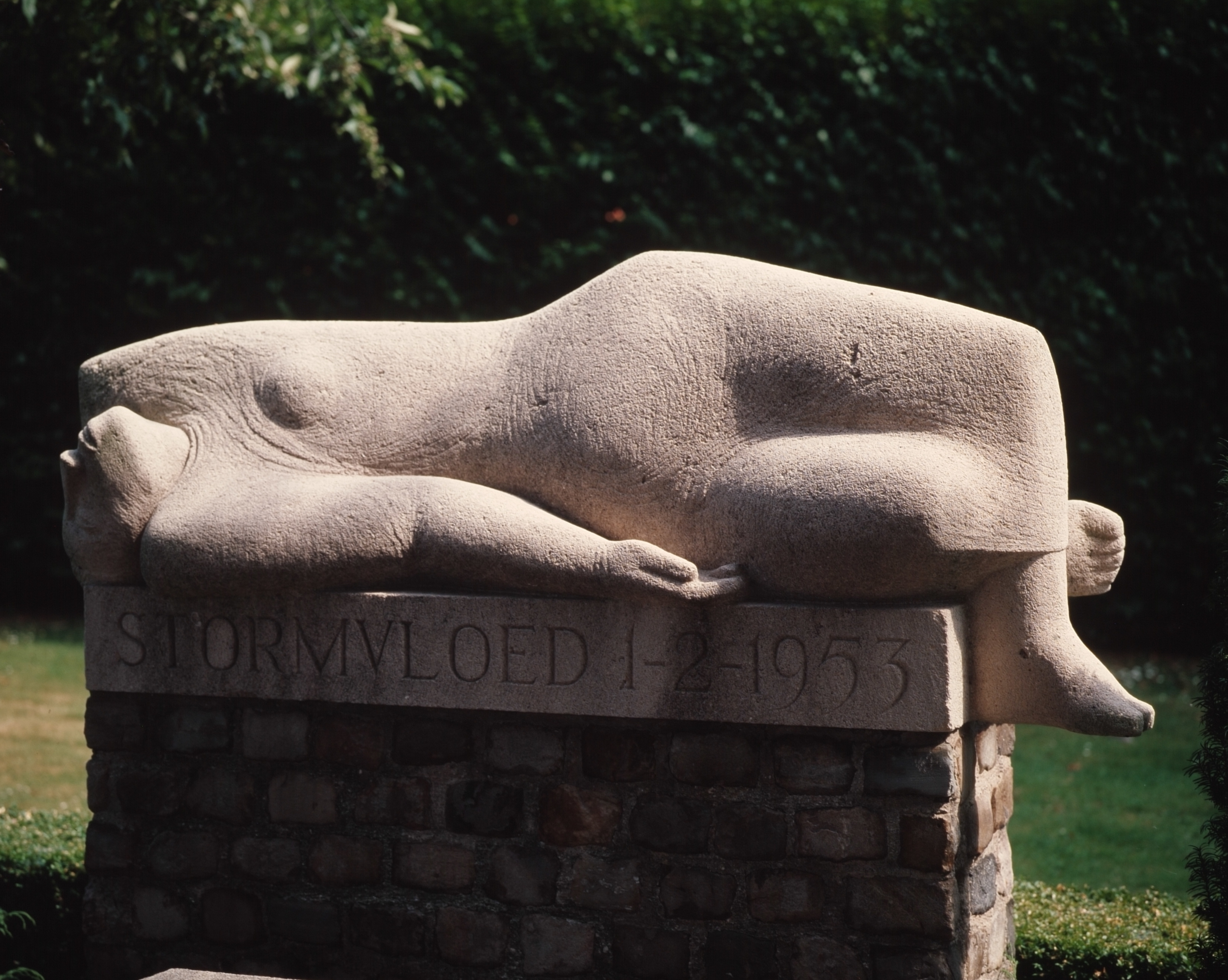 Het Watersnoodmonument van Rudy Rooijackers op de oude begraafplaats aan de Kerkstraat …