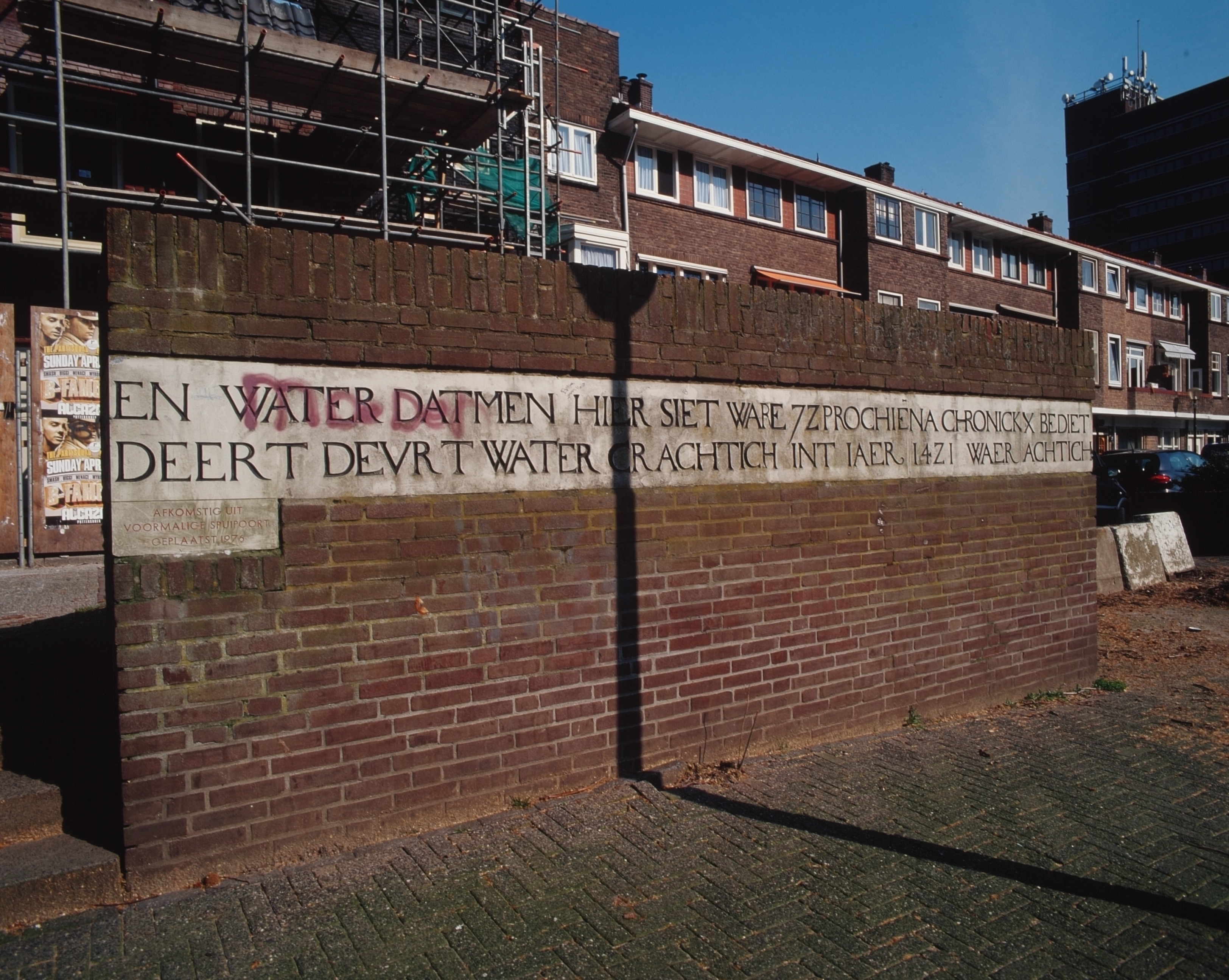 - Tekst op een muur die herinnert aan de Sint Elisabethsvloed op de Spuiboulevard t.h.v. nummer 307.