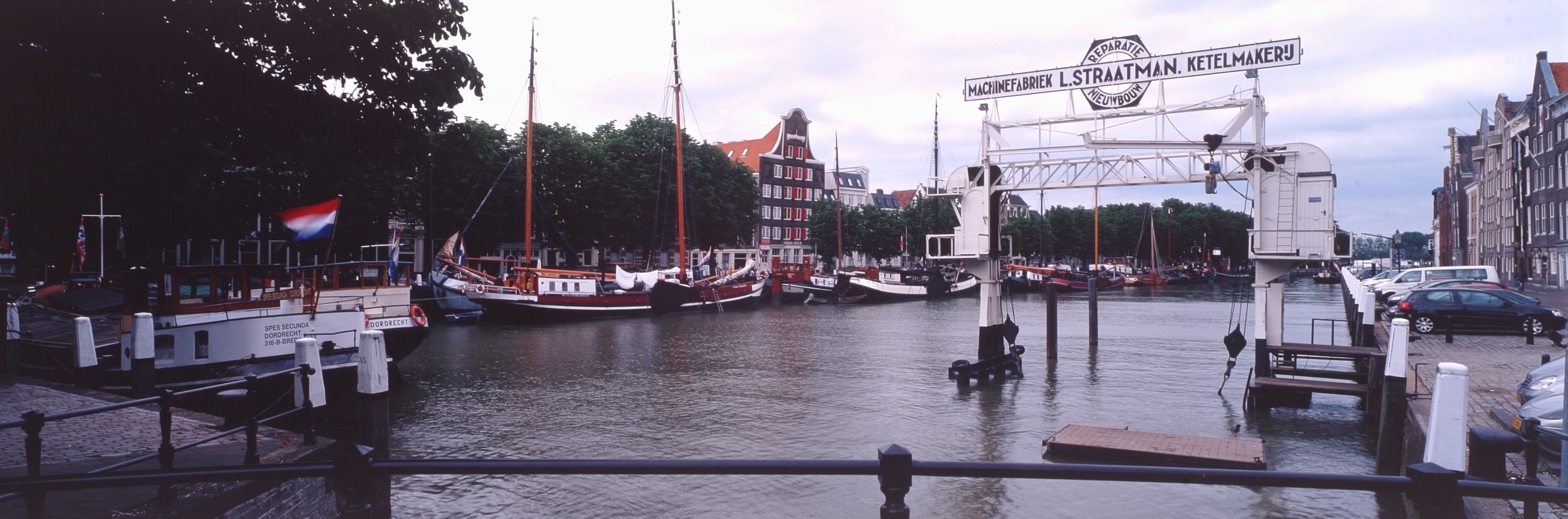 - De Wolwevershaven vanaf het Vlak. Links pakhuis Stokholm, rechts de scheepslift van Straatman aan de Kuipershaven.
