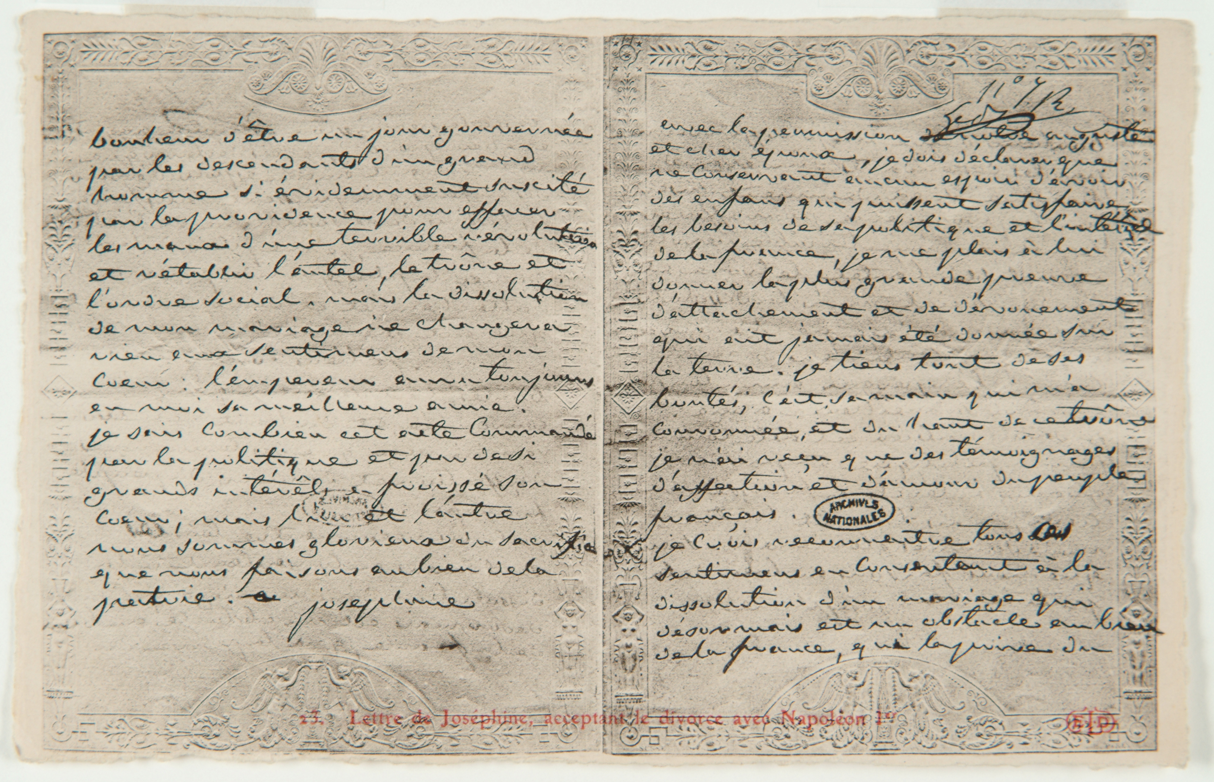 Brief van Joséphine de Beauharnais waarin zij haar echtscheiding (in 1809) van Napoleon Bonaparte aanvaardt.