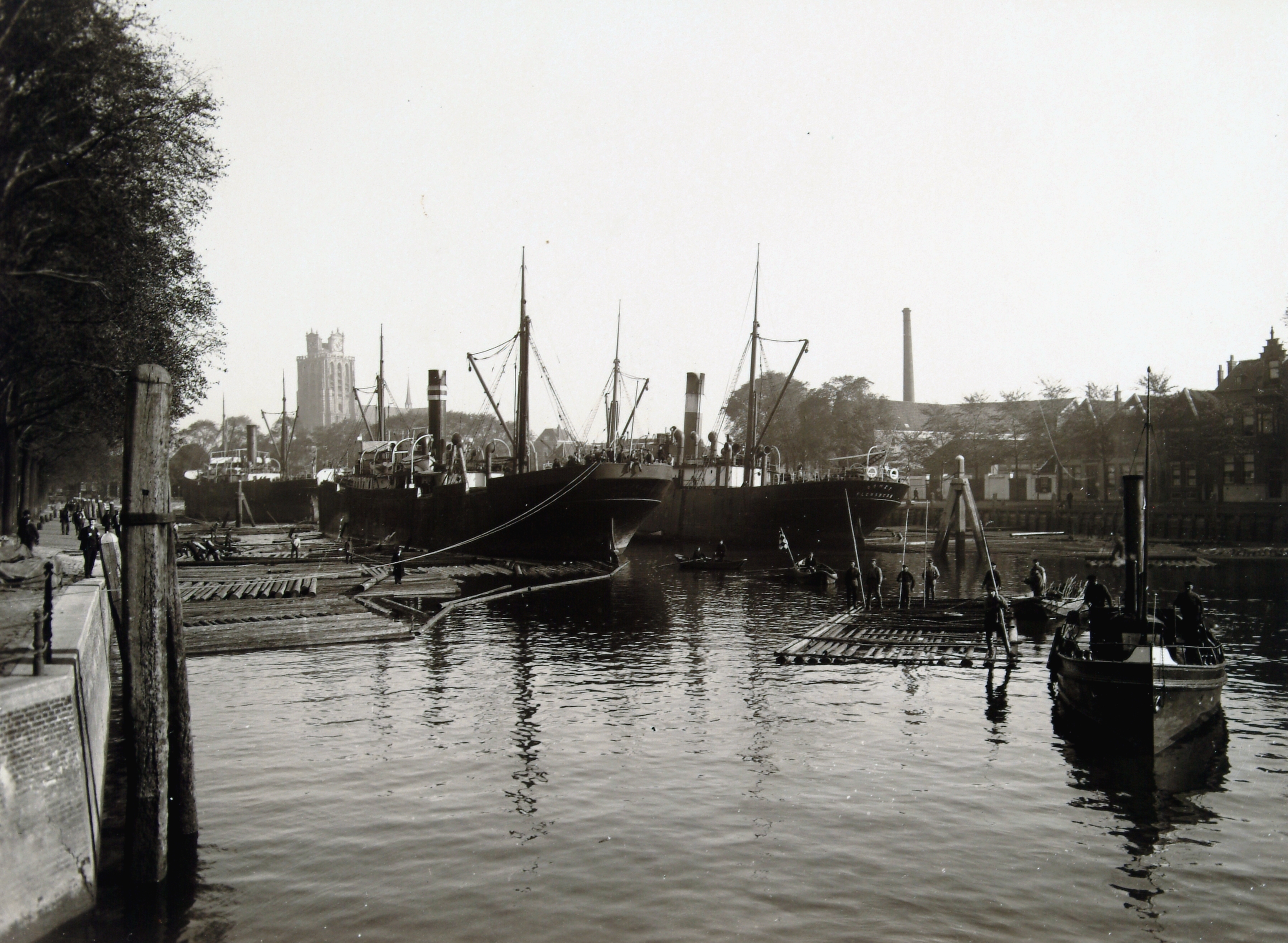 - dukdalven / meerpalen havens houtvlotten kerken sleepboten vrachtboten