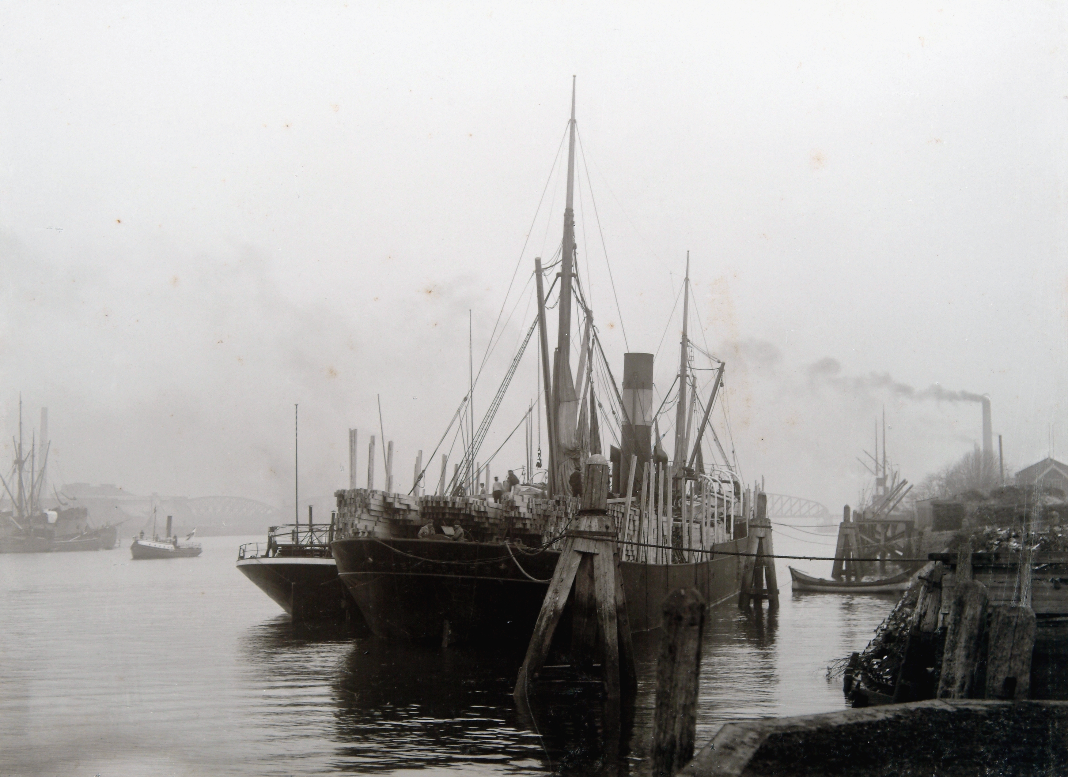 - Afgemeerd vrachtschip aan de 's-Gravendeelsedijk.