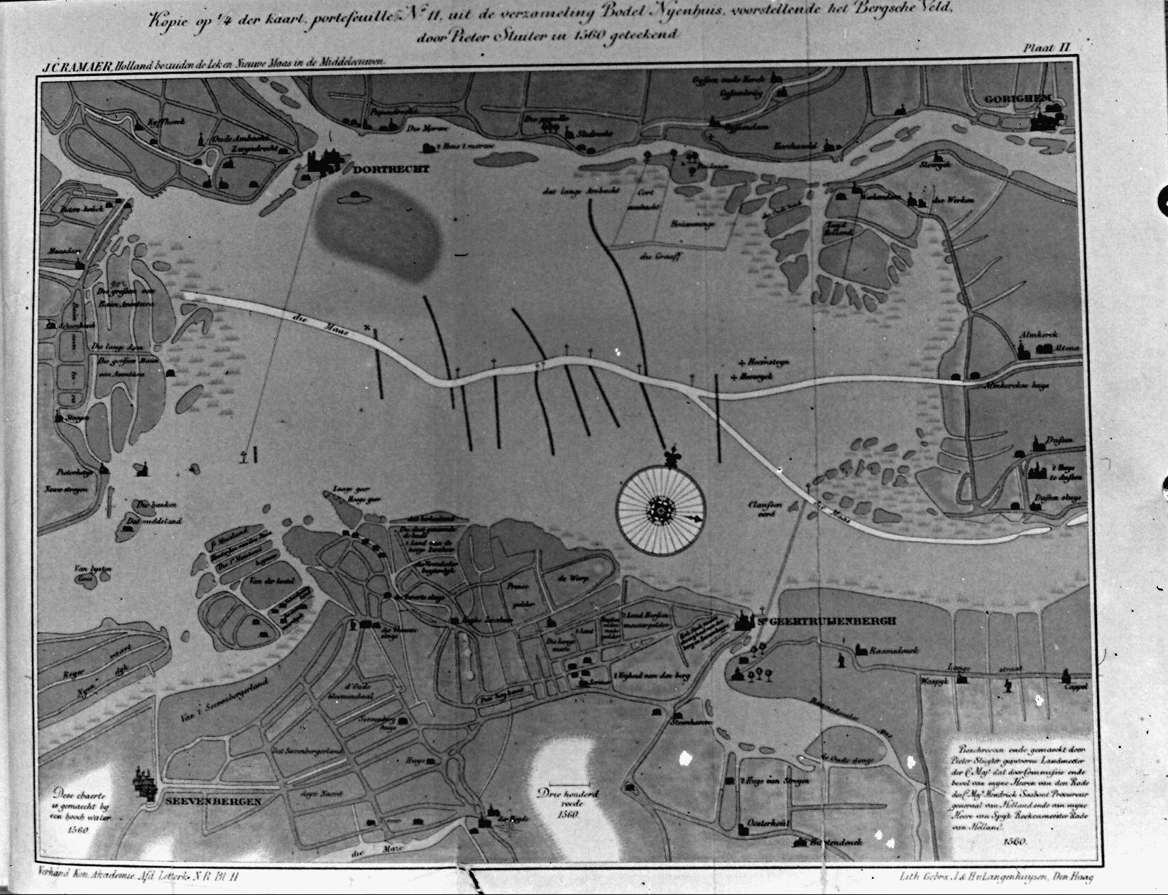 Het Bergsche Veld door Pieter Stuiter in 1560 getekend. Kopie op 1/4 der kaart. Portefeuille N11 uit de verzameling Bodel Nijenhuis.