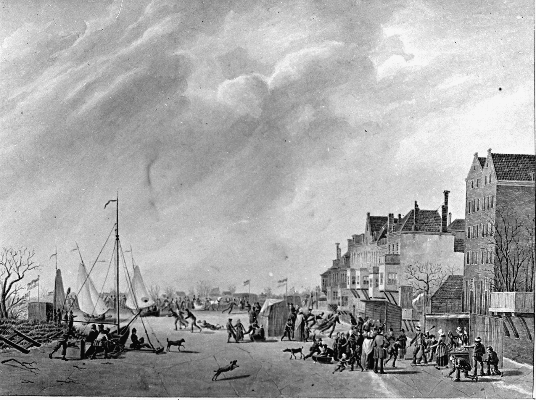 - honden ijspret Maaskamers tekeningen voetgangers zeilvaartuigen