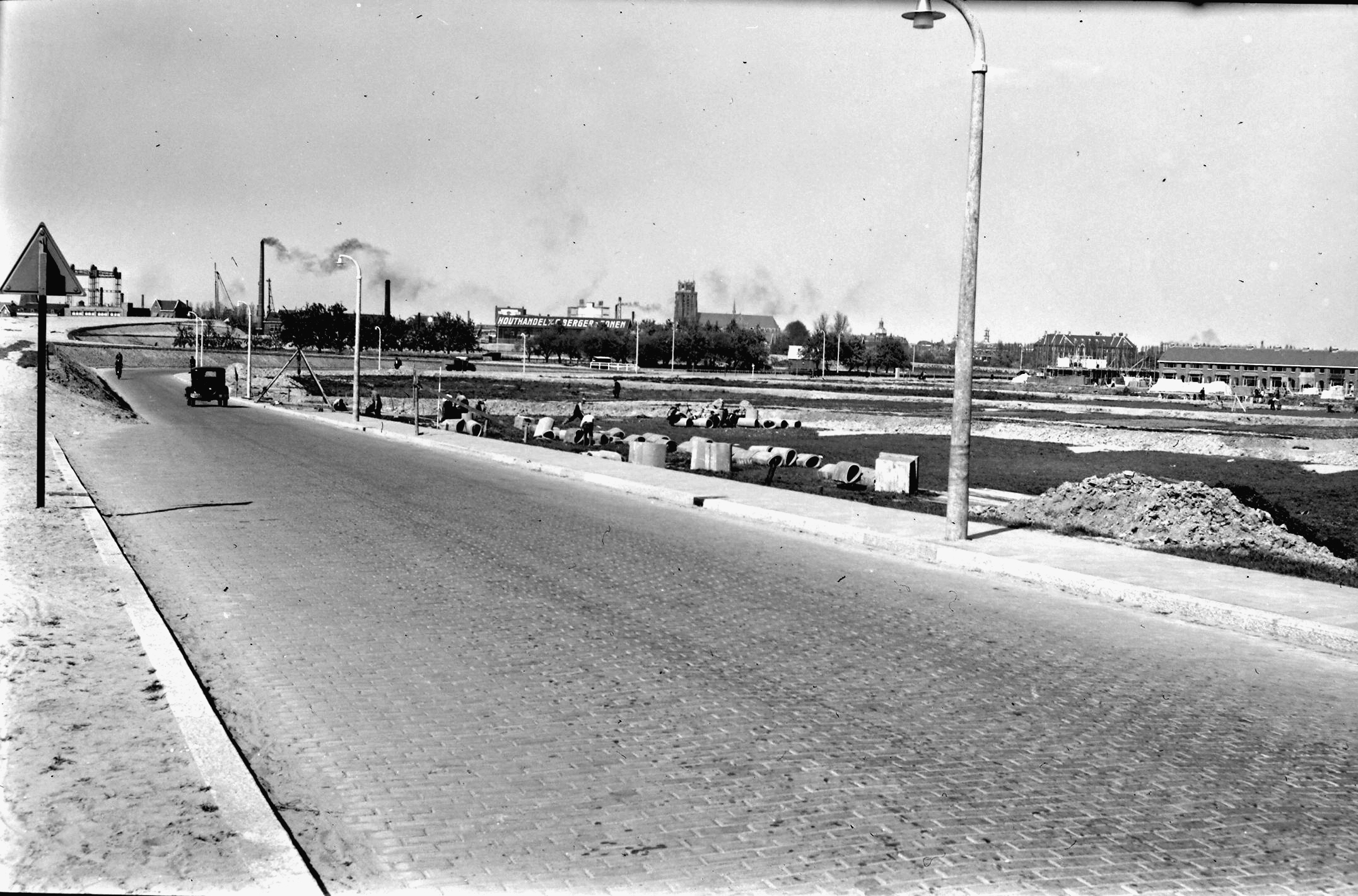- De Diepenbrockweg en aanleg van riolering voor de Johan Wagenaarstraat. Op de achtergrond v.l.n.r. de Dokbrug, fabrieken E.M.F. en Victoria, houthandel Berger, de Grote Kerk, torens van villa Rozenhof en het Stadhuis, gebouw van verzekeringsmaatschappij Eerste Nederlandsche.
