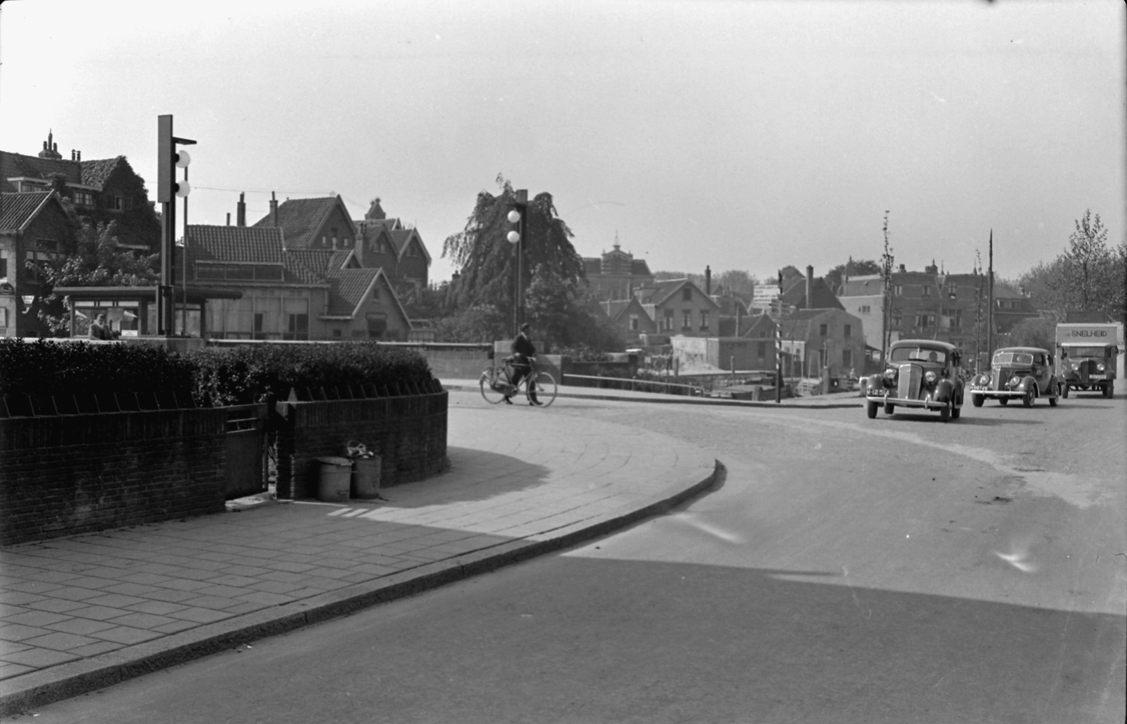 - auto's bruggen fietsers lantaarns / straatverlichting richtingborden / wegwijzers vuilnisemmers