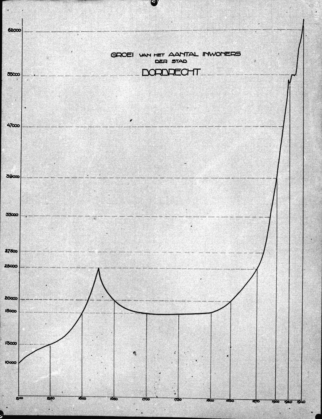 - Grafiek van het inwoneraantal in Dordrecht tussen 1500 en 1940.
