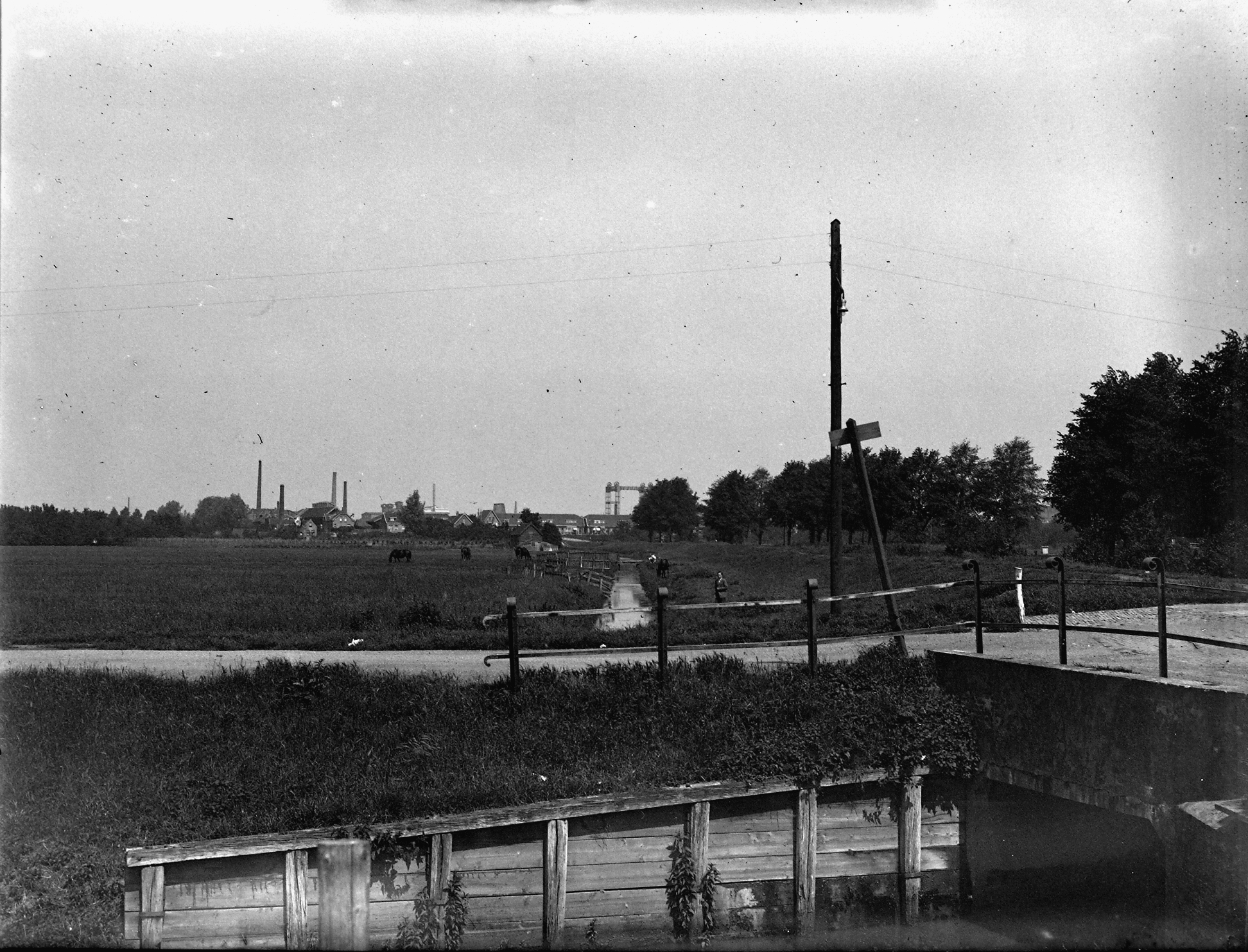 De Watermolenweide naar het westen gezien. Op de achtergrond de Weeskinderendijk en de …
