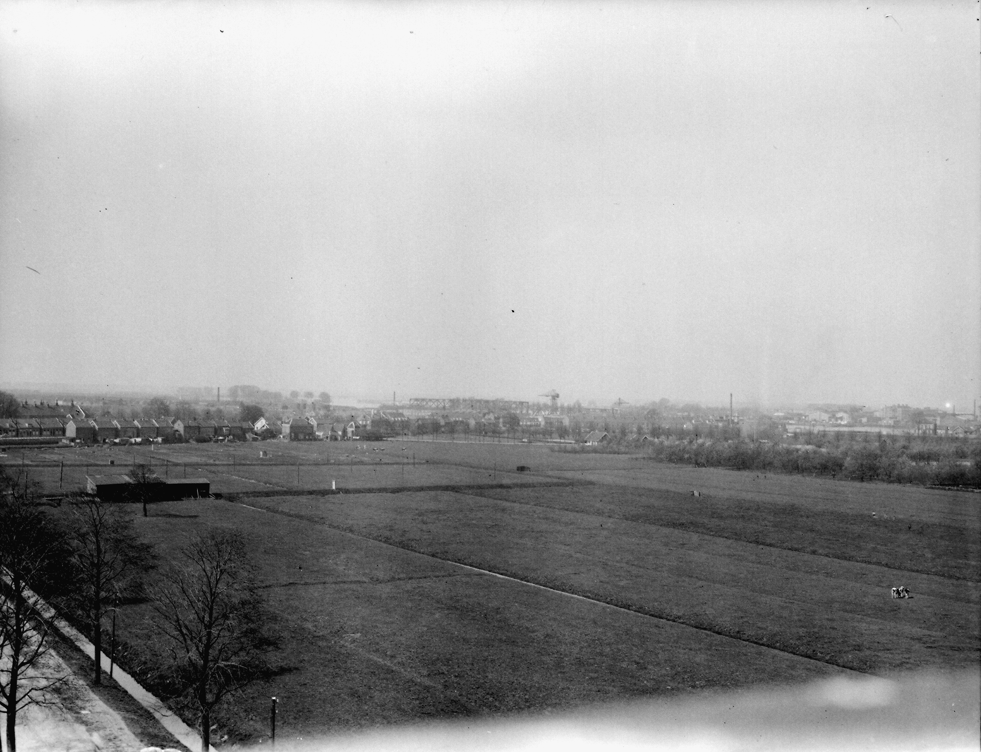 - Panorama vanaf de Torenschool over de Zuidpolder richting Zuidendijk (west), Glazenstraat en 's-Gravendeelsedijk. Linksonder een stukje Boezemkade, daarna de Jan Vethkade en weer later de Frans Lebretlaan geheten.