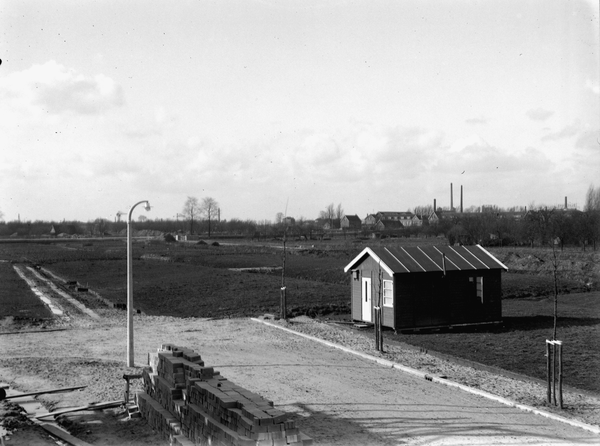 - Gezicht van het punt Brederodestraat/Van Baerlestraat in de richting van de Weeskinderendijk. De Hugo de Grootlaan moest nog worden aangelegd.