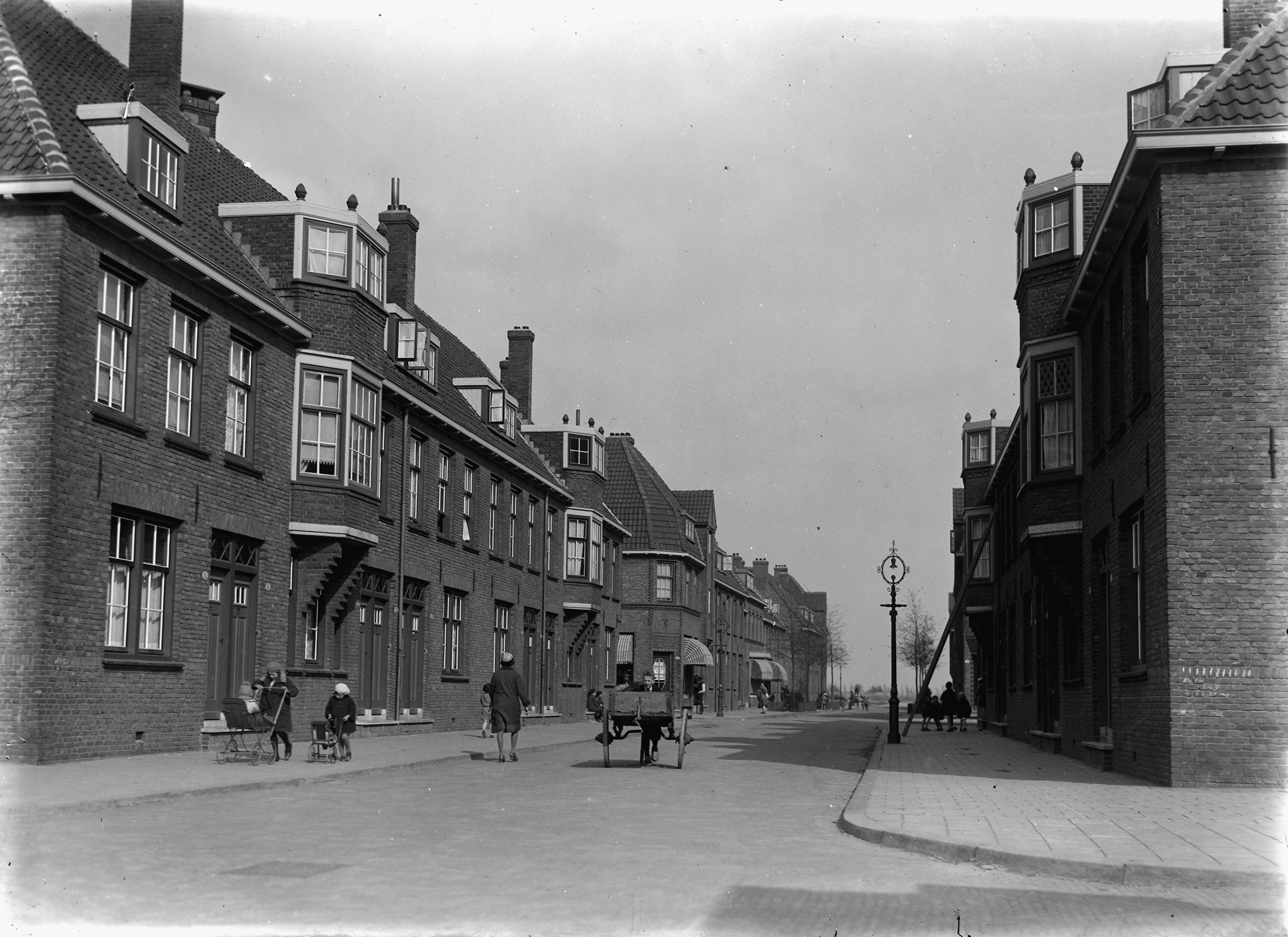 - erkers handkarren kinderen kinderwagens lantaarns / straatverlichting voetgangers
