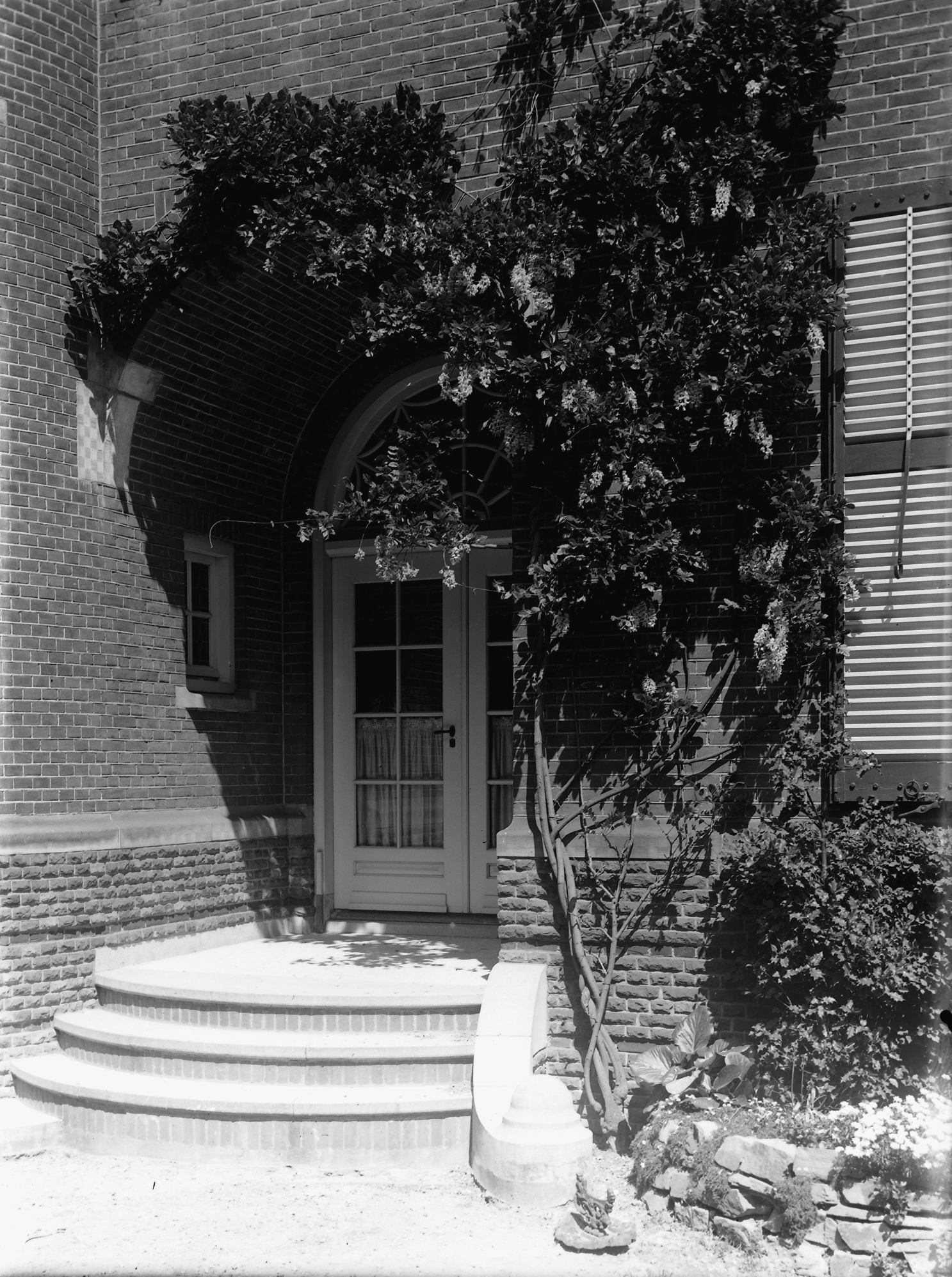 Zijingang van villa Berkensteijn in het Oranjepark, hoek Vrieseweg.