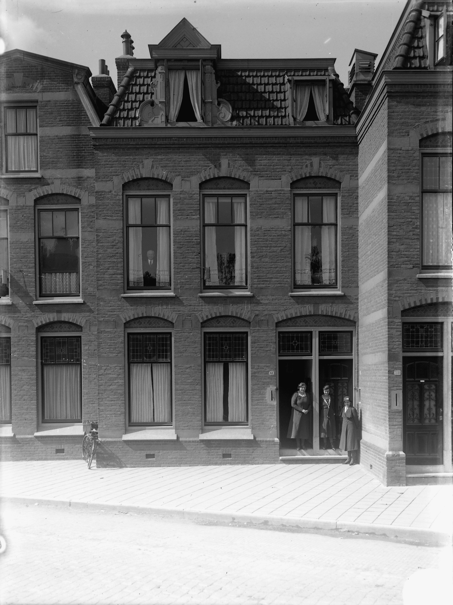 Vergelijk 552_332697 en 554_31771, bij beide foto's het pand t.h.v. de fietser. Alleen het puntje op de sierlijke dakkapel is verdwenen. Zie ook commentaar Bart, Ad en Ton.