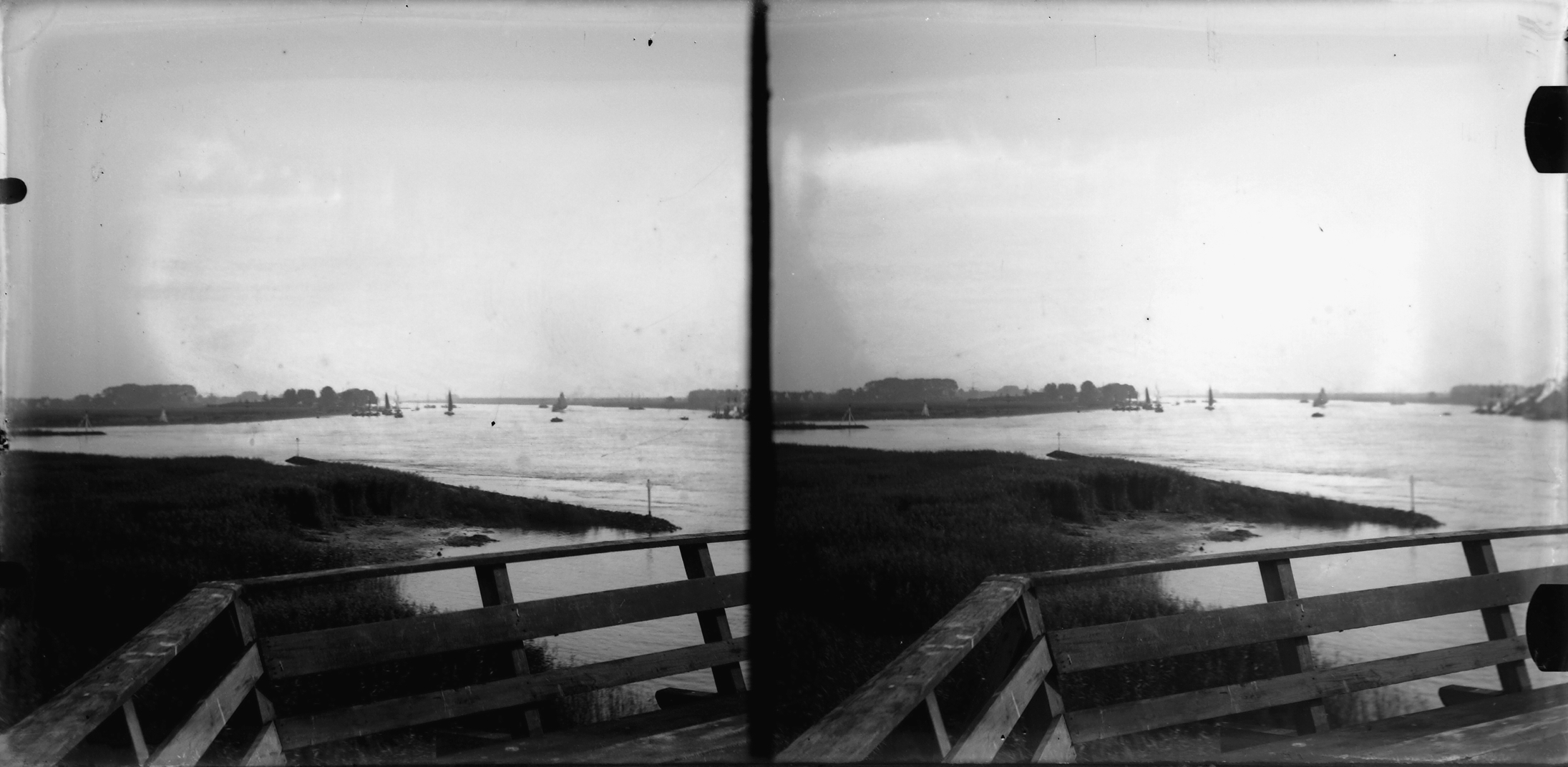 - Stereofoto vanaf molen Welgelegen in Zwijndrecht over de Merwede en de Noord (links).