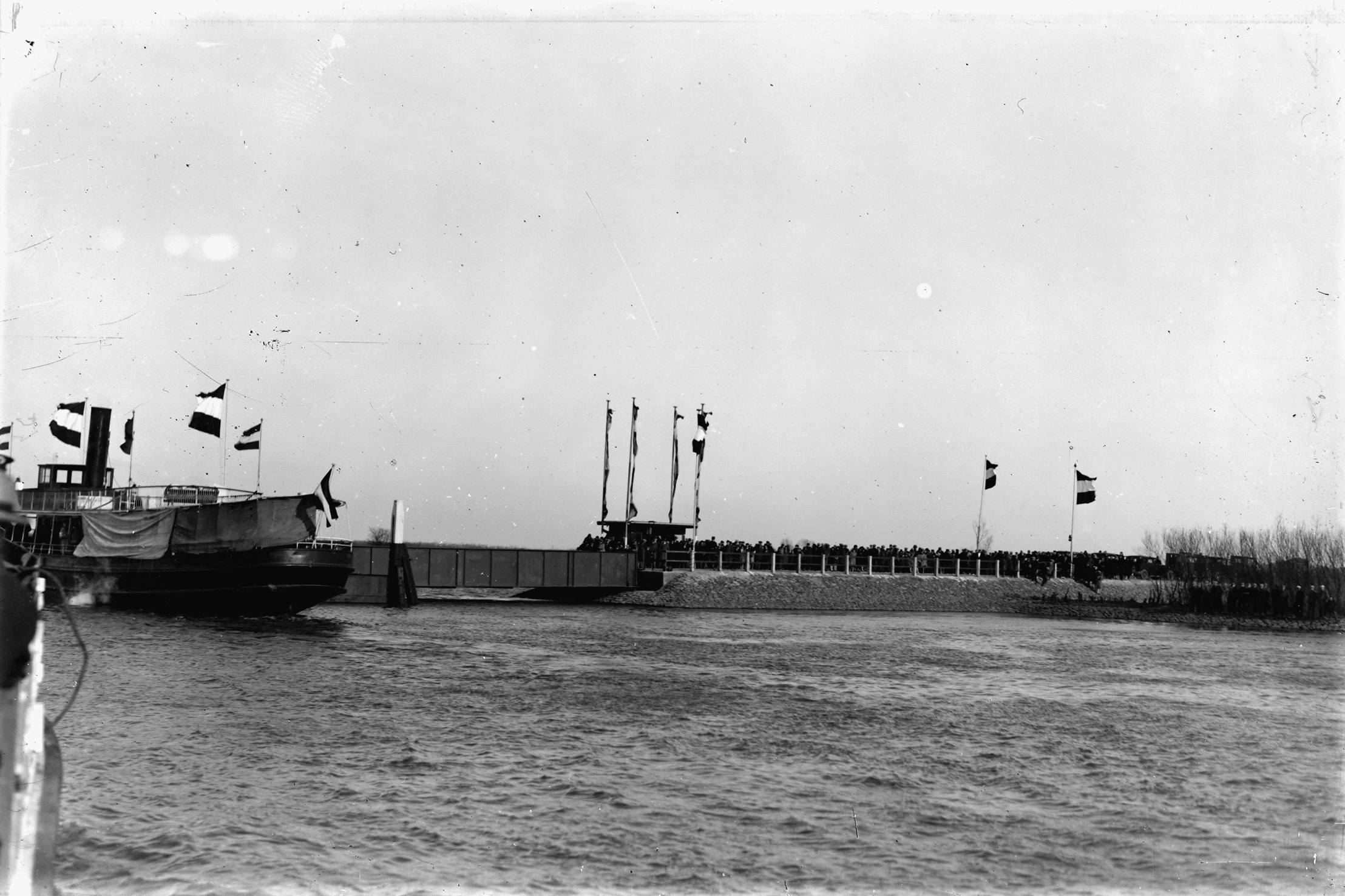 - openingen ponten / veerboten publiek / toeschouwers veersteigers vlaggen(stokken)
