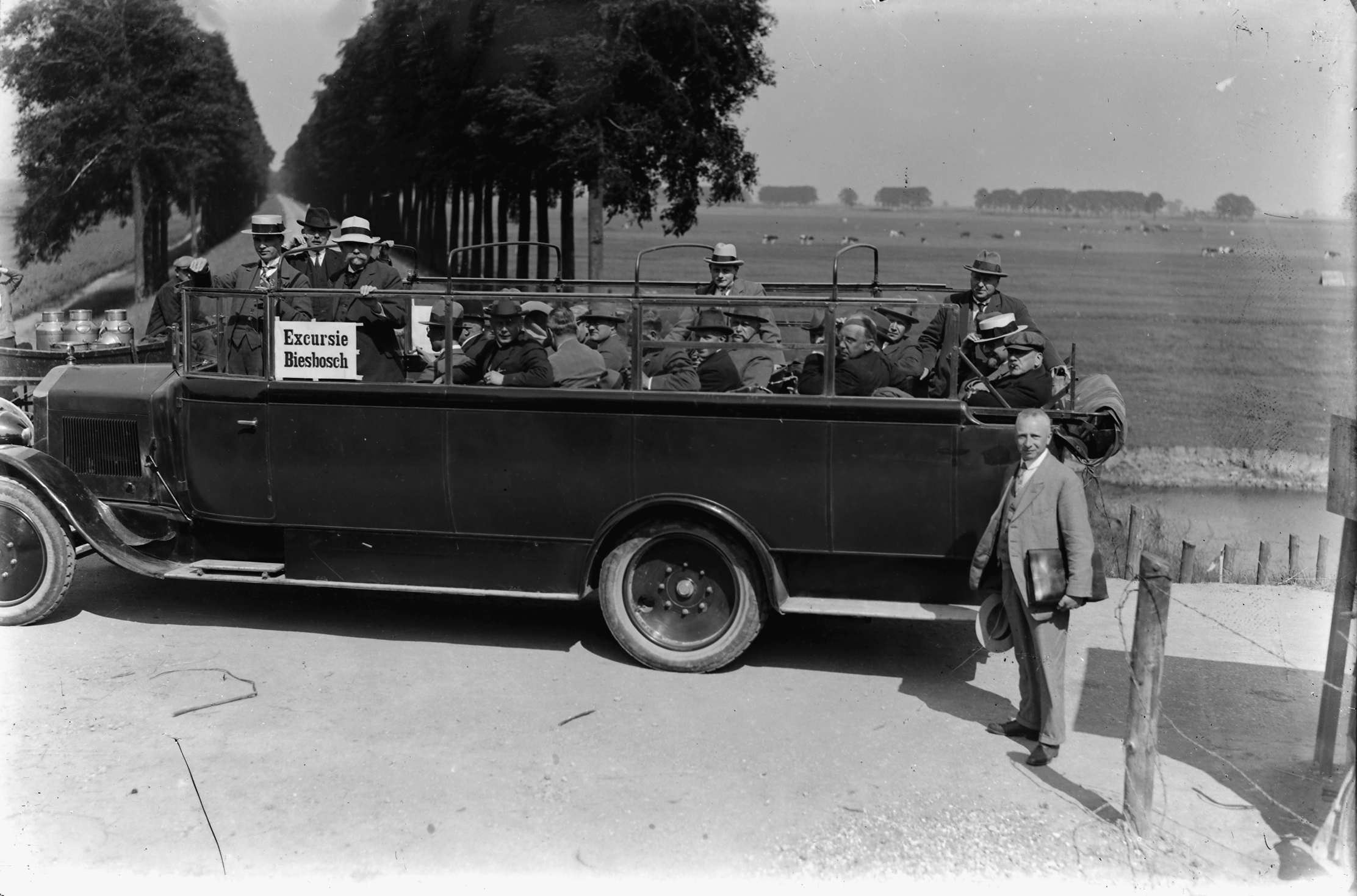 - Bus met genodigden in de pas in het kader van de werkverschaffing drooggelegde Polder de Biesbosch.
