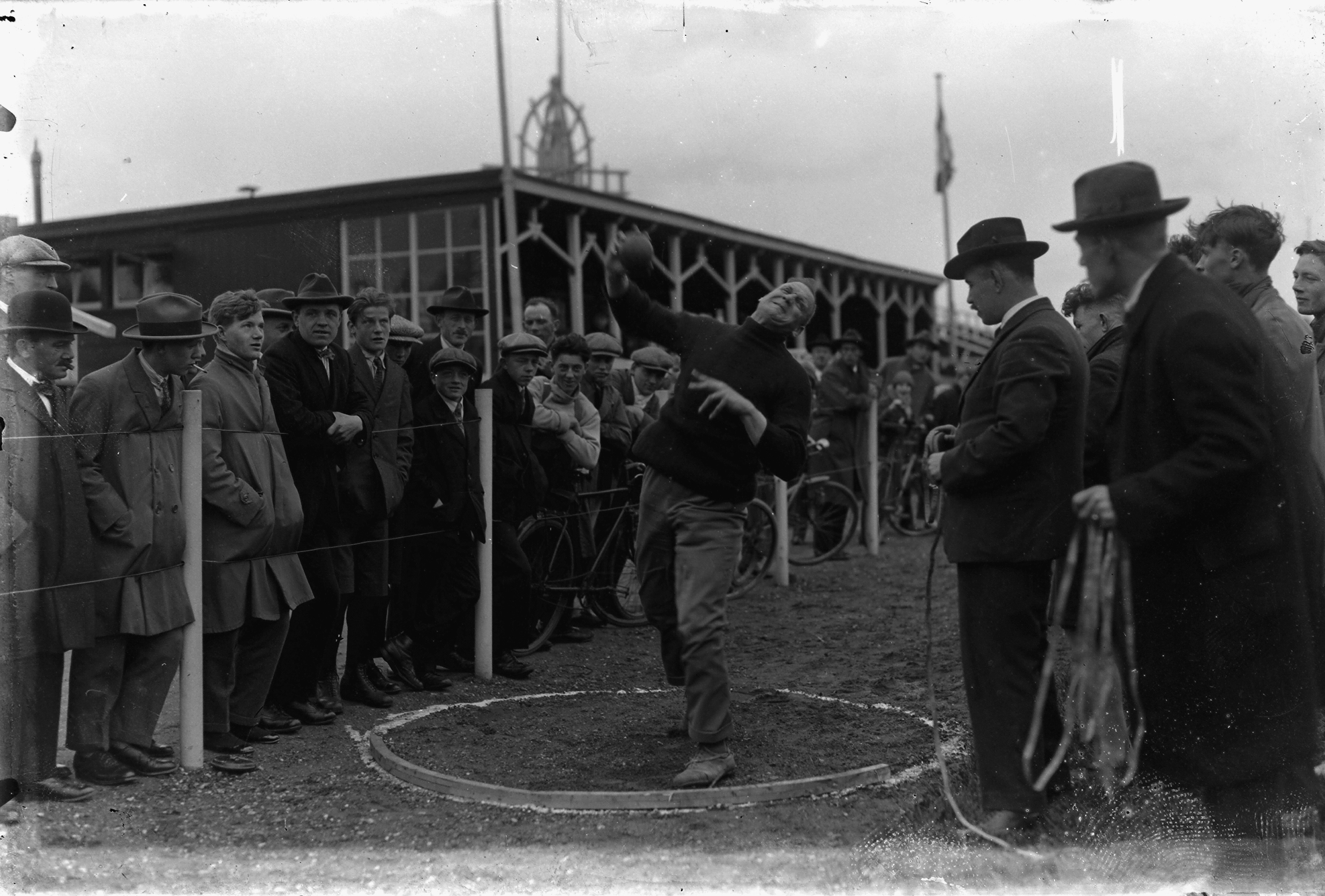 Kogelstoten op het D.F.C.-terrein aan de Markettenweg.