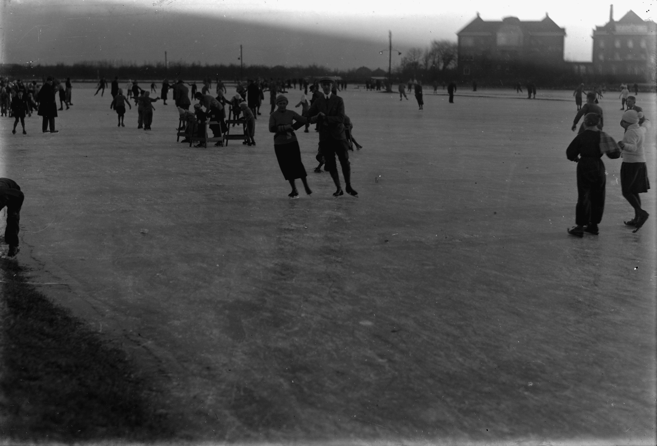- Schaatsers op de baan van de Dordrechtsche Sneeuw- en IJsclub op de hoek Bankastraat/Oranjelaan